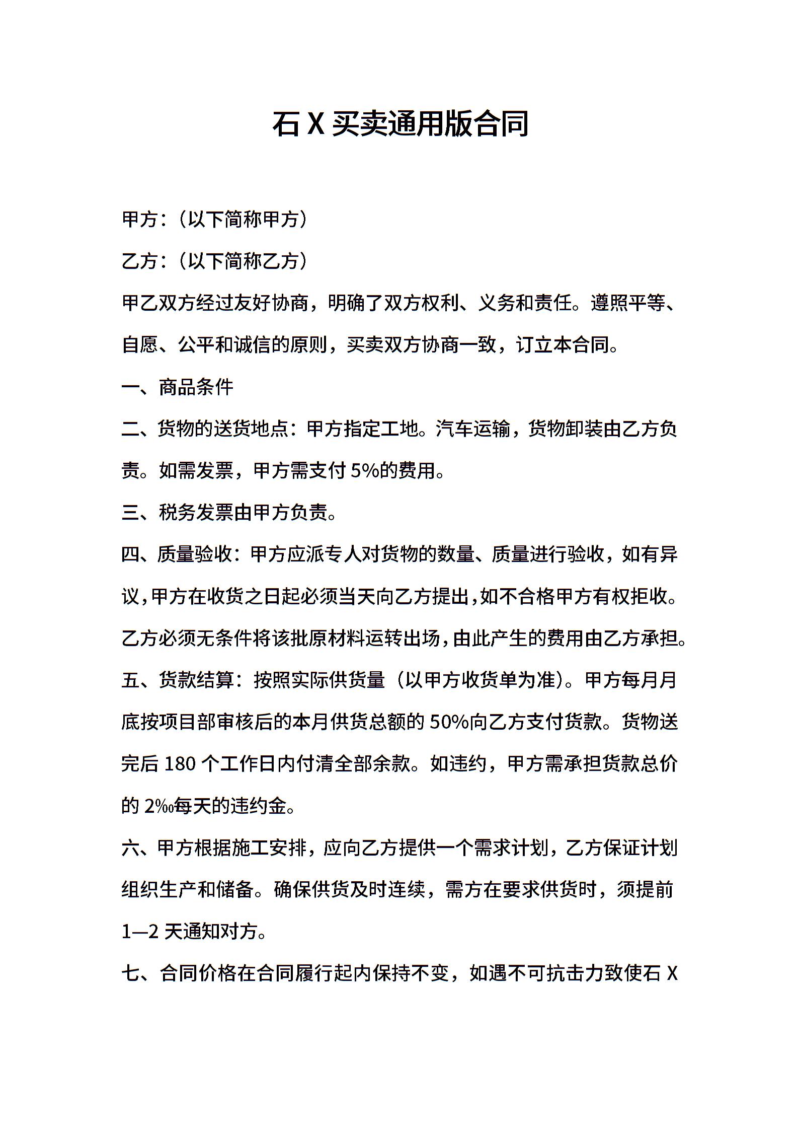石X买卖通用版合同