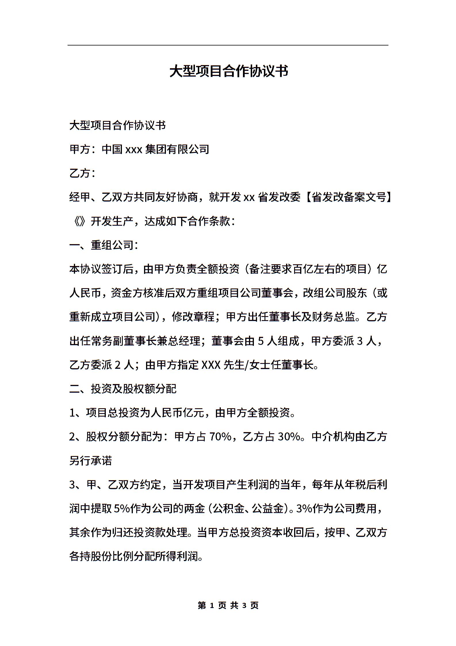 大型项目合作协议书