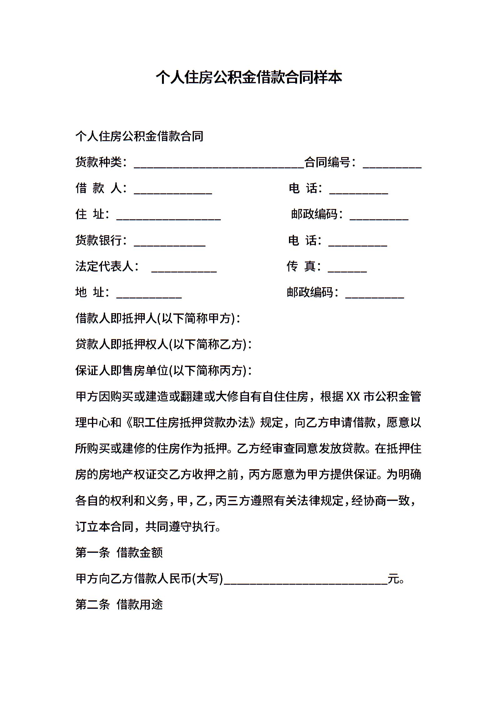 个人住房公积金借款合同样本