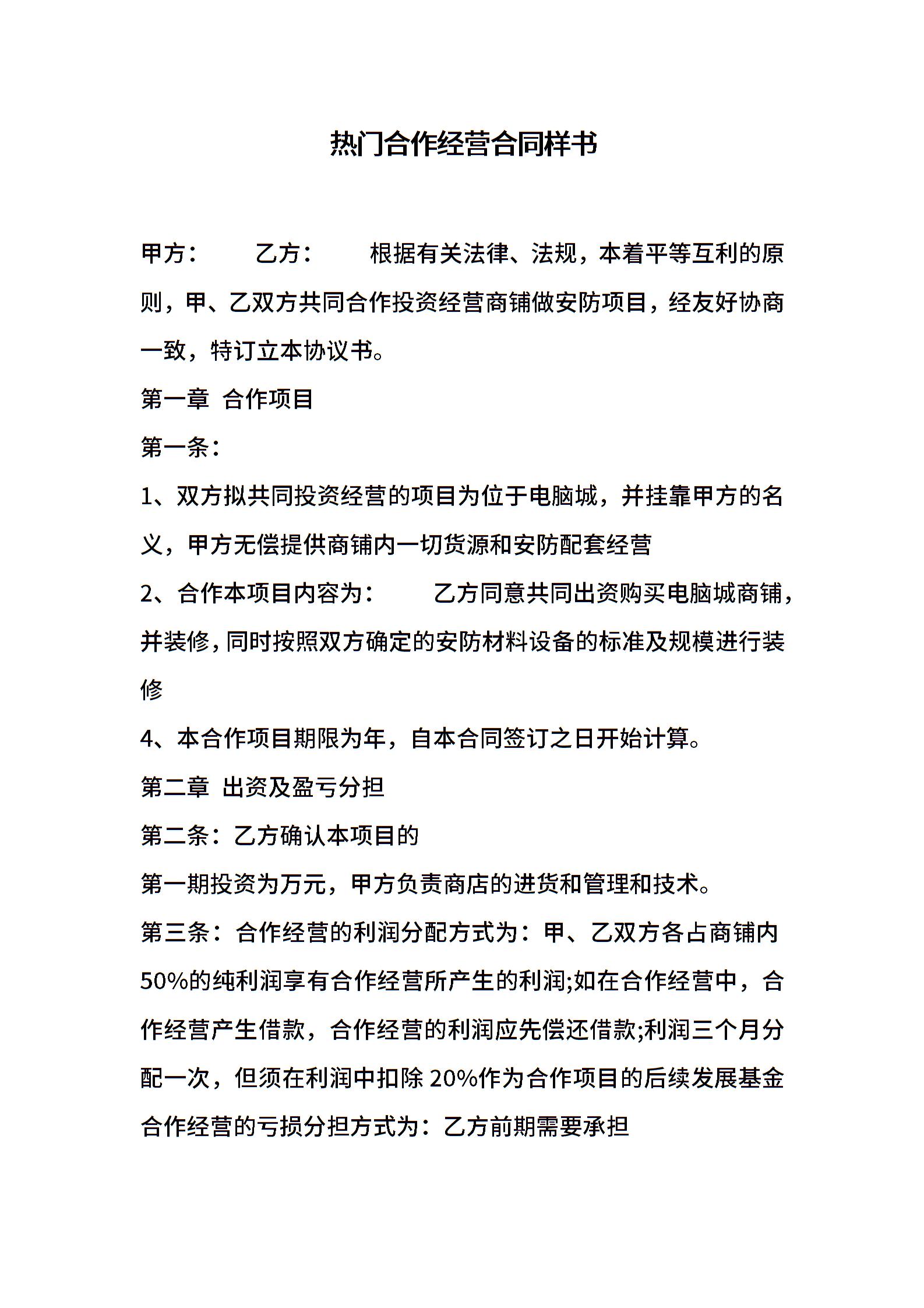 当前位置:量子办公 > 合同模板 > 合作合同 >