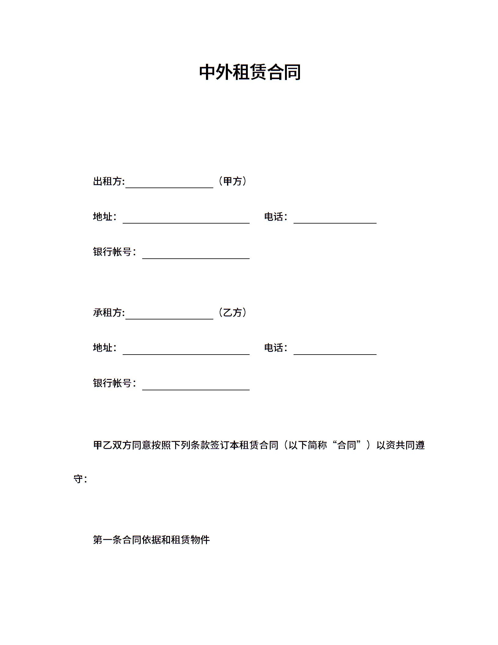 合同4租赁合同中外租赁合同.doc