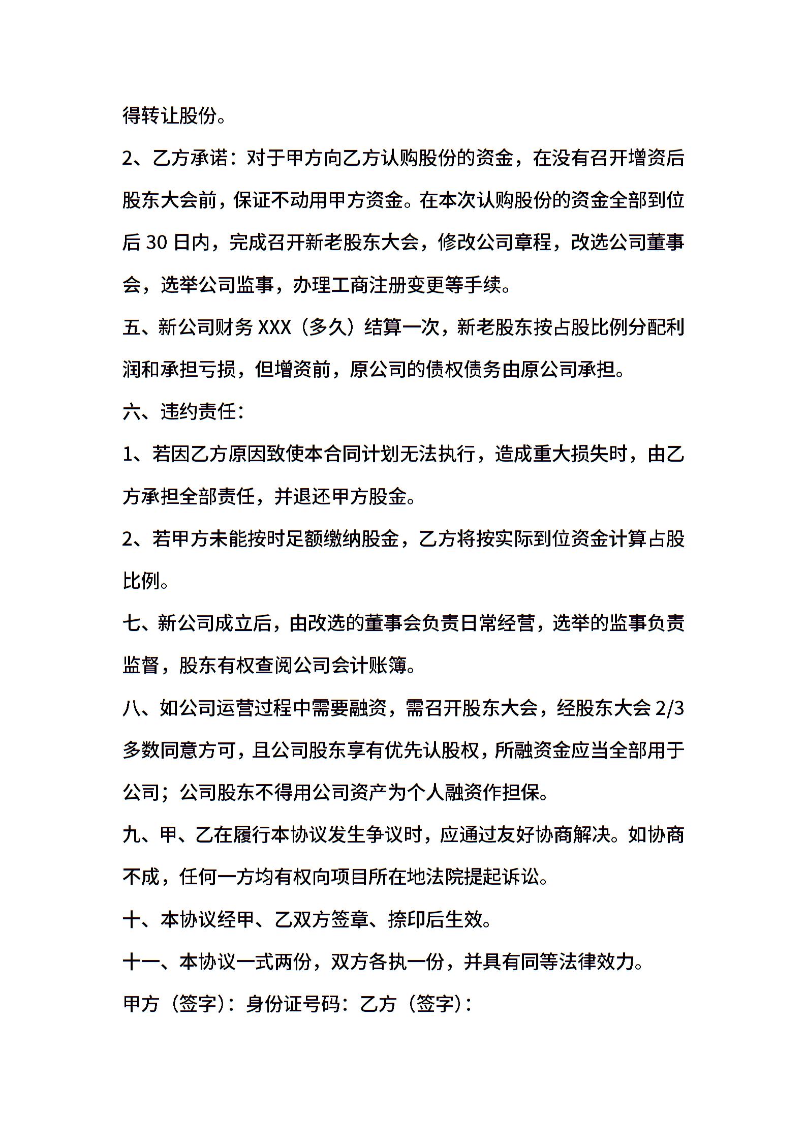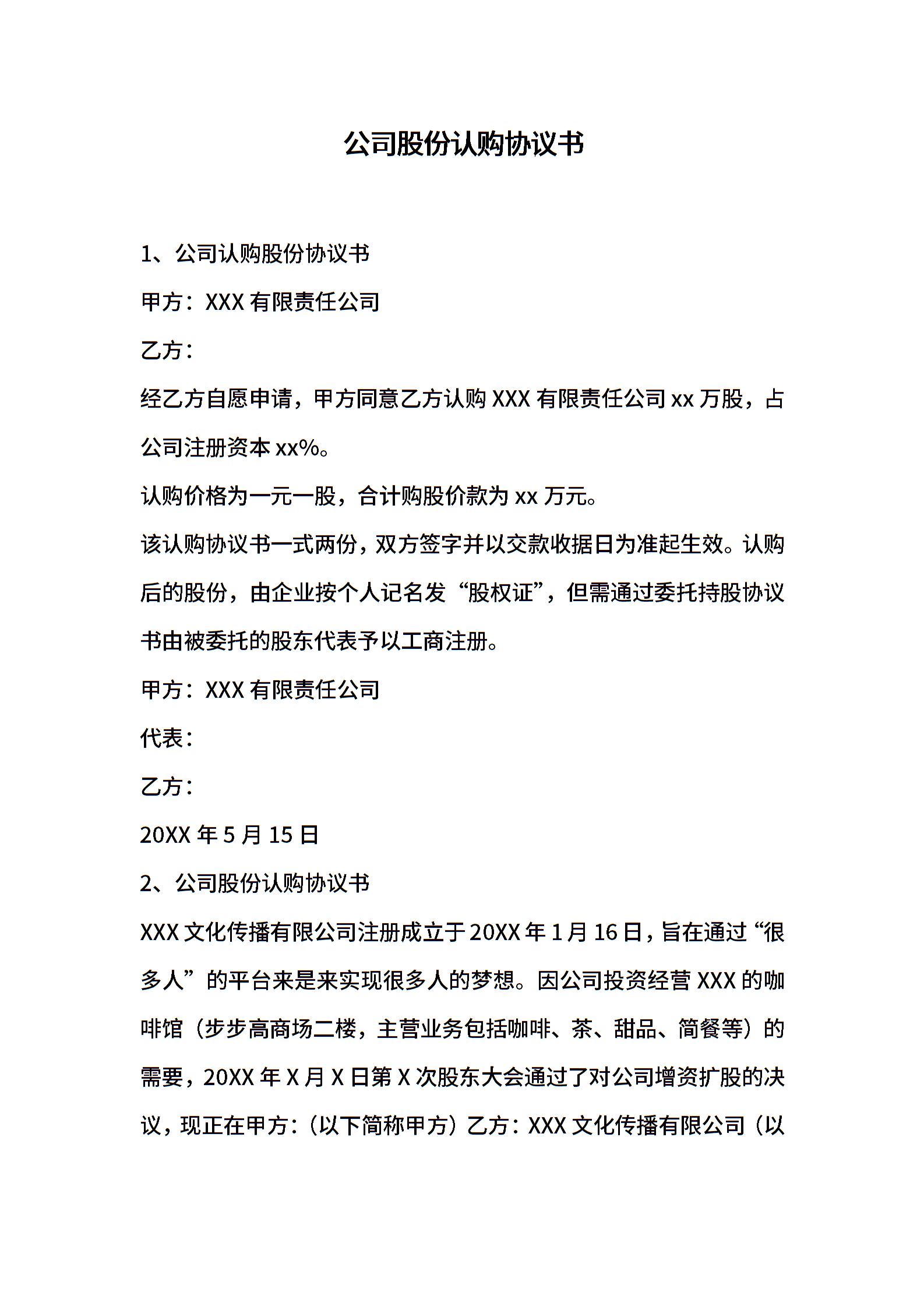 • 分类 认购协议
