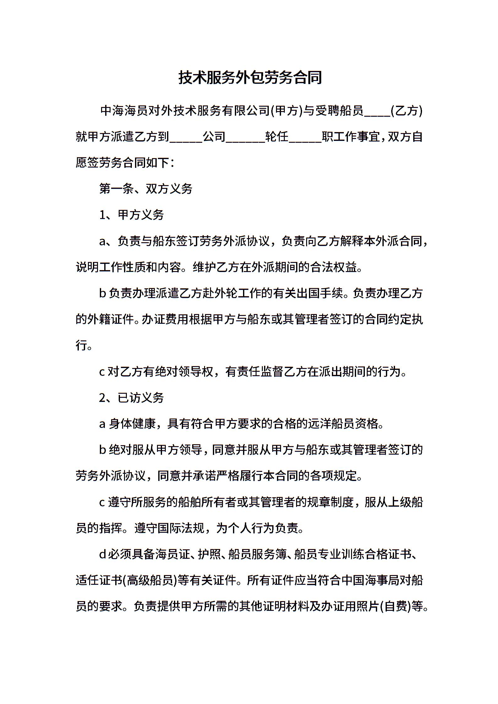 技术服务外包劳务合同