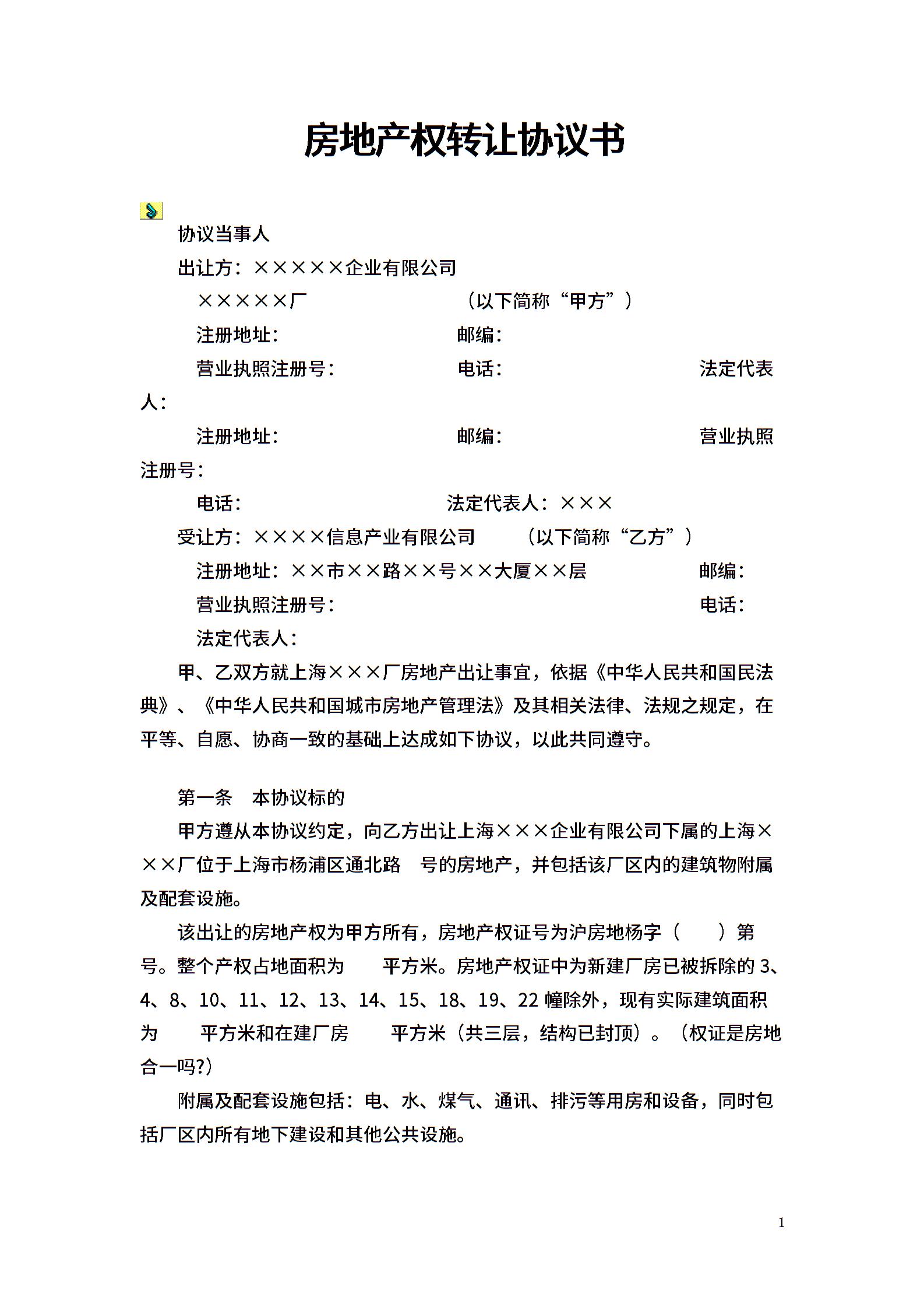 房地产权转让协议书
