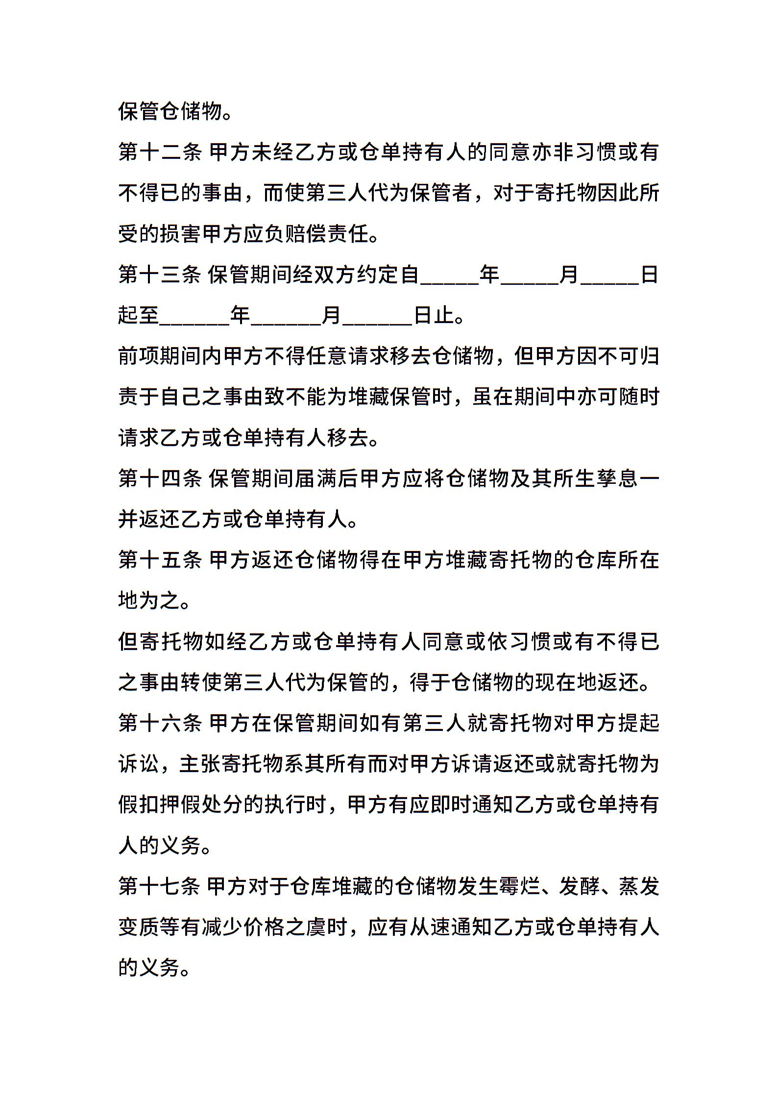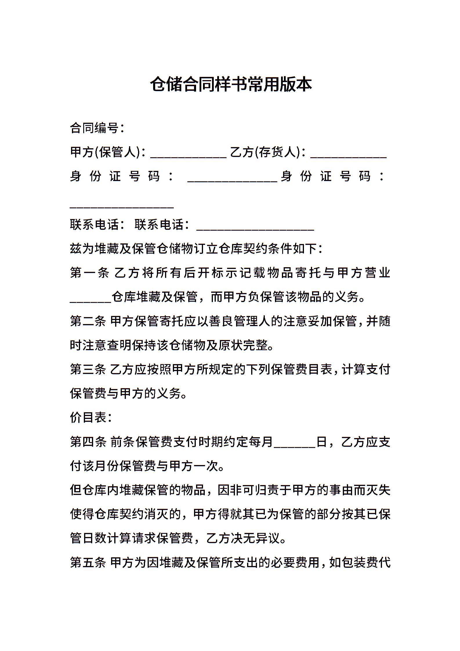 仓储合同样书常用版本