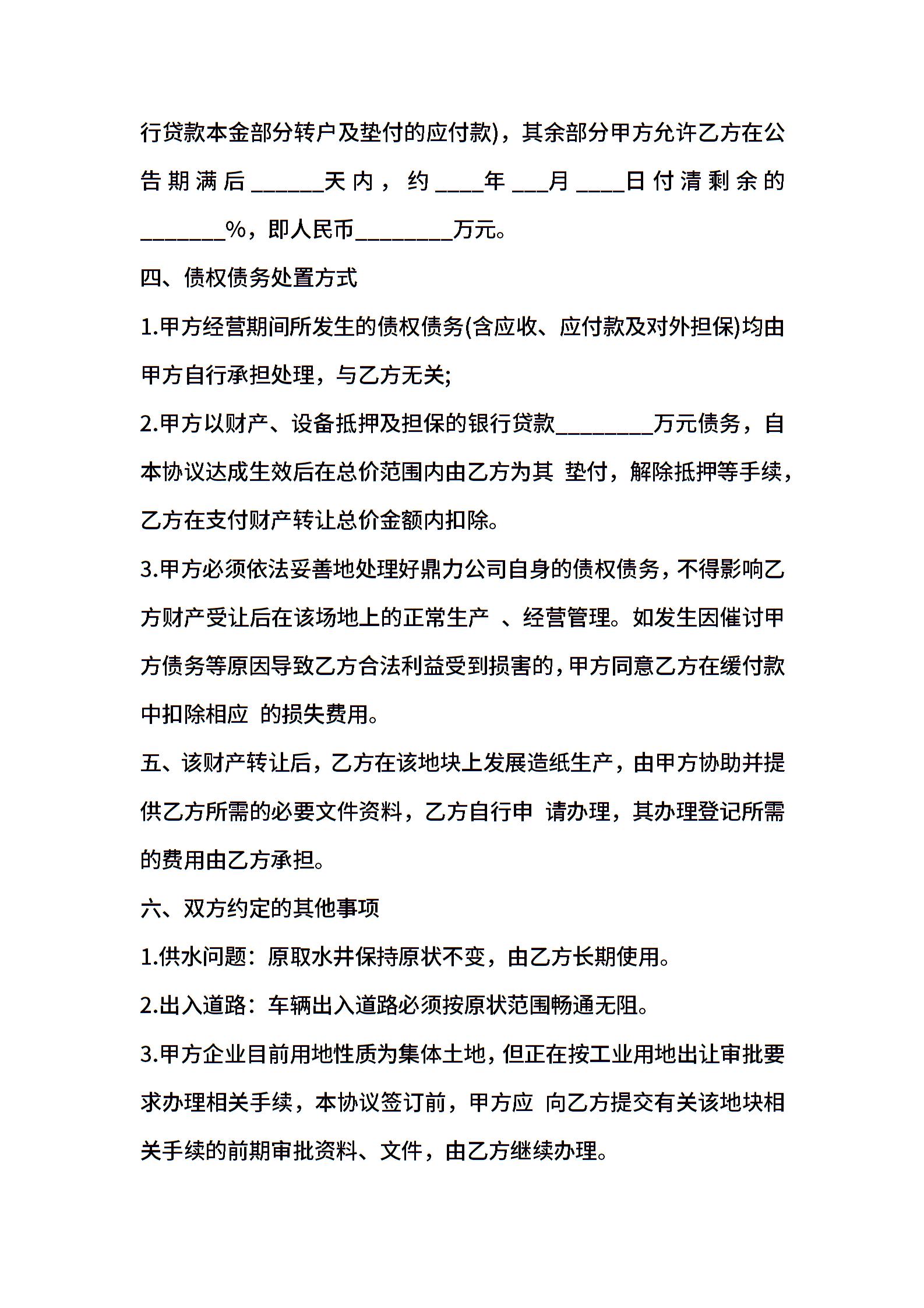 个人财产转让协议书模板