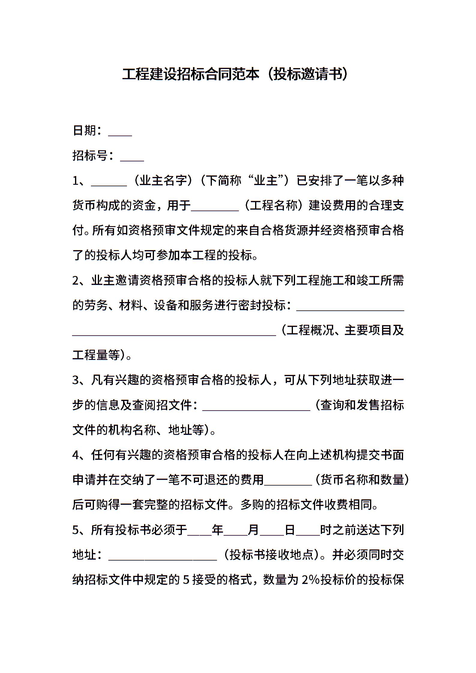工程建设招标合同范本(投标邀请书)
