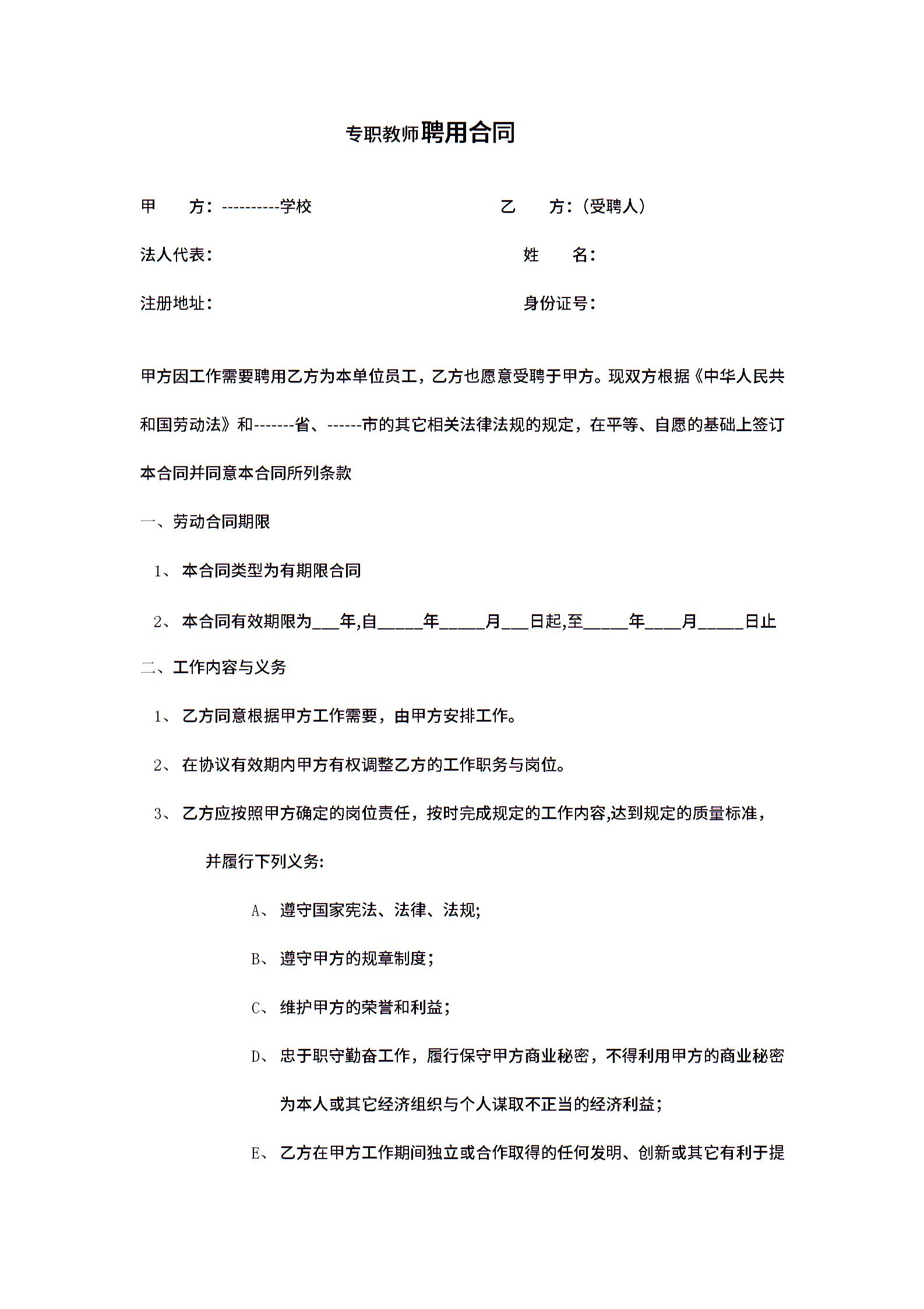 当前位置:量子办公 > 合同模板 > 聘用合同 >