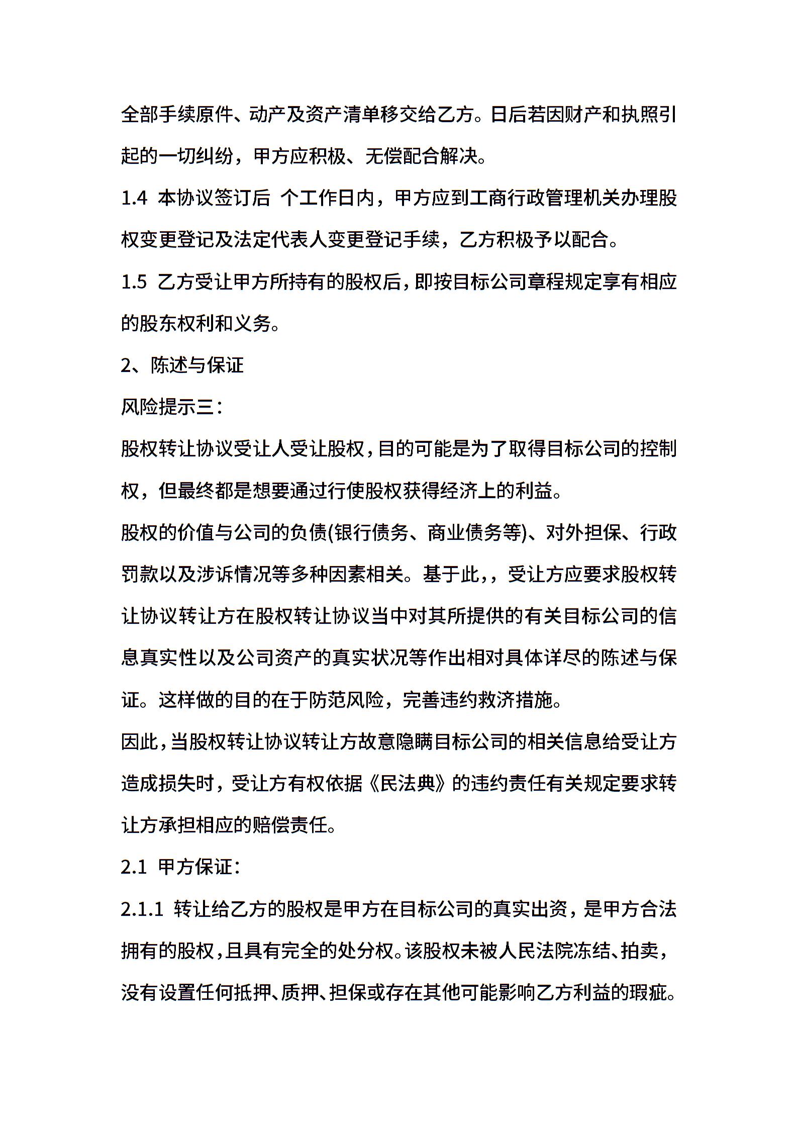 • 分类 股权转让协议