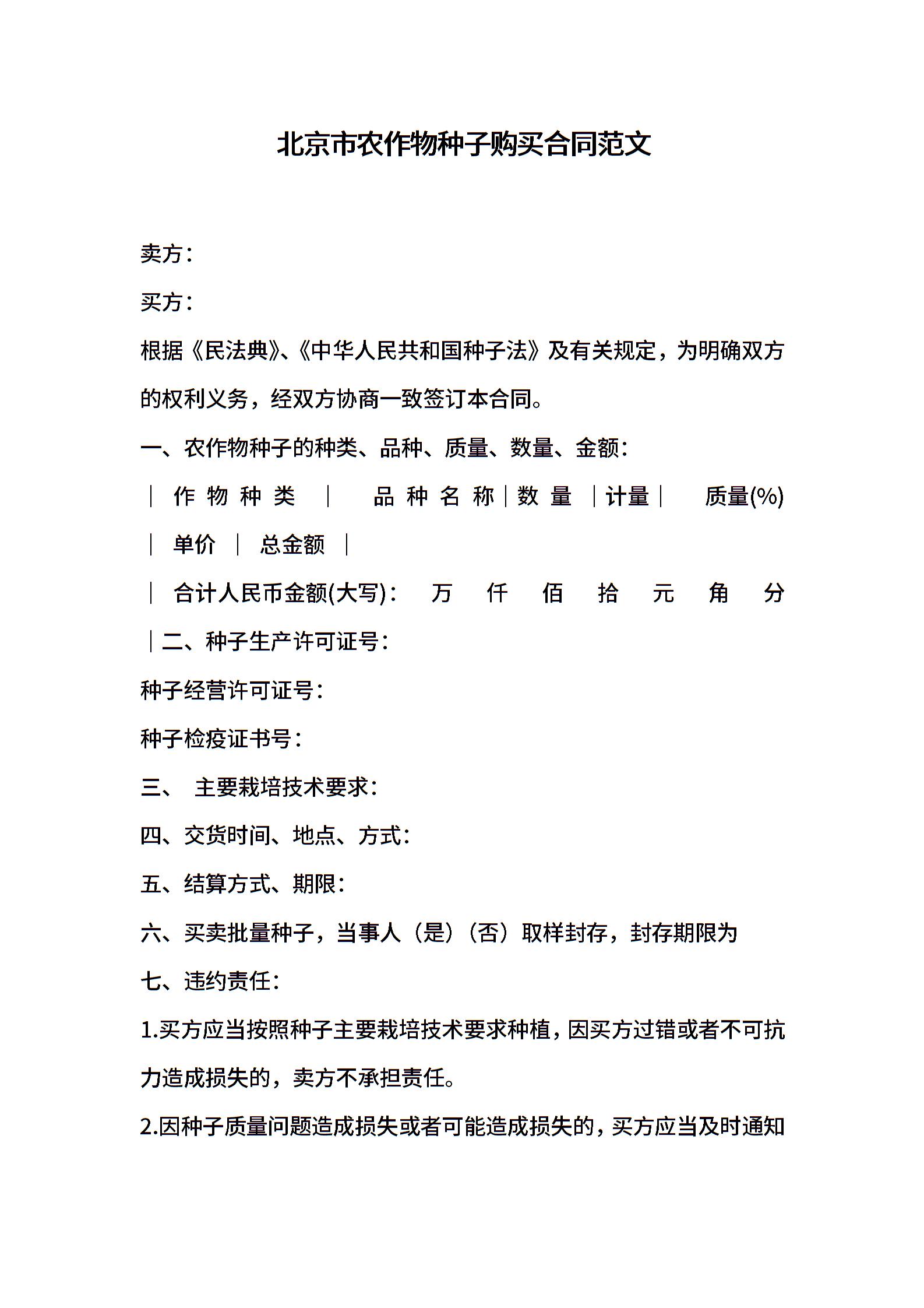 北京市农作物种子购买合同范文