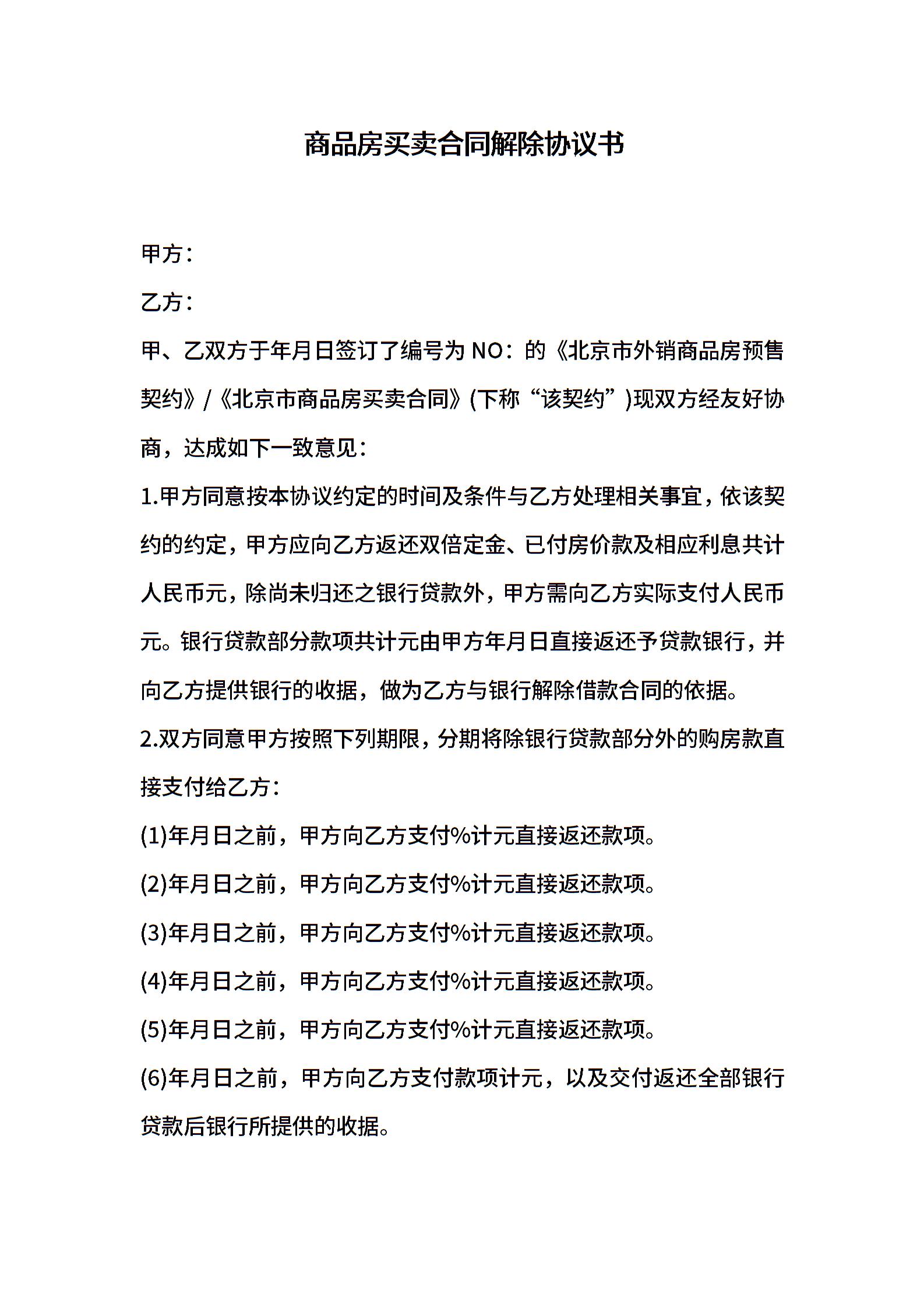 商品房买卖合同解除协议书