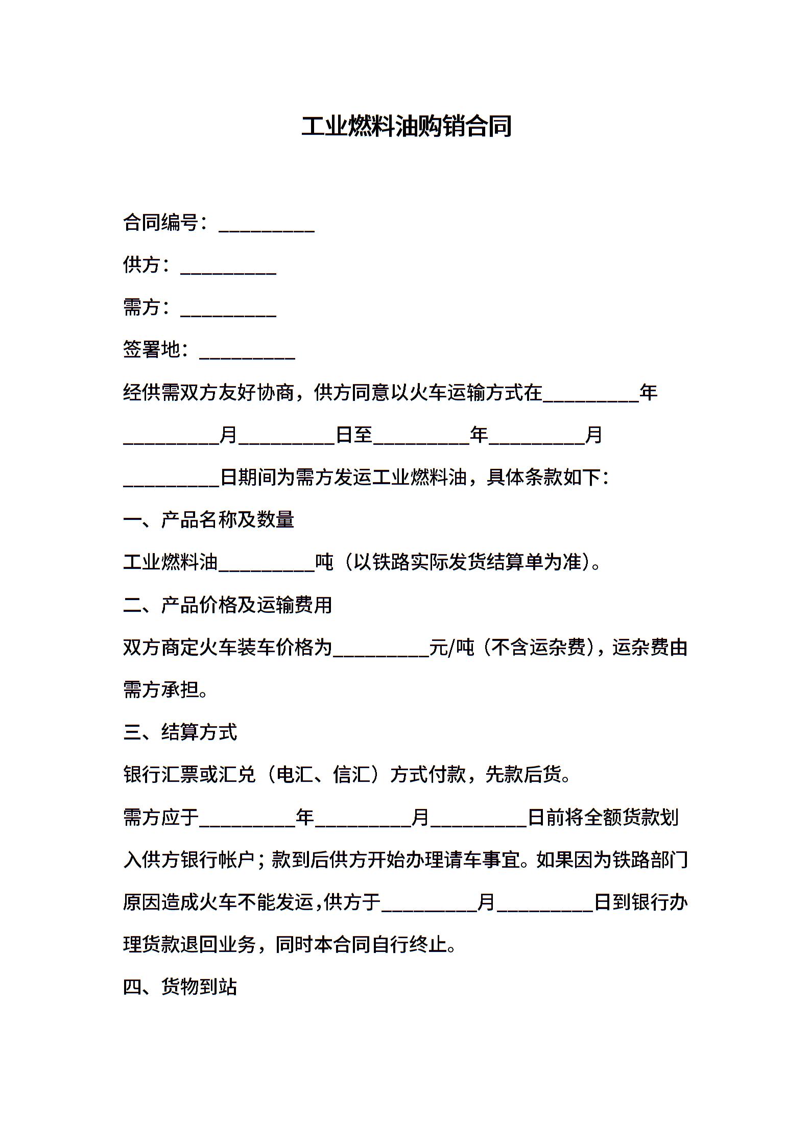 工业燃料油购销合同
