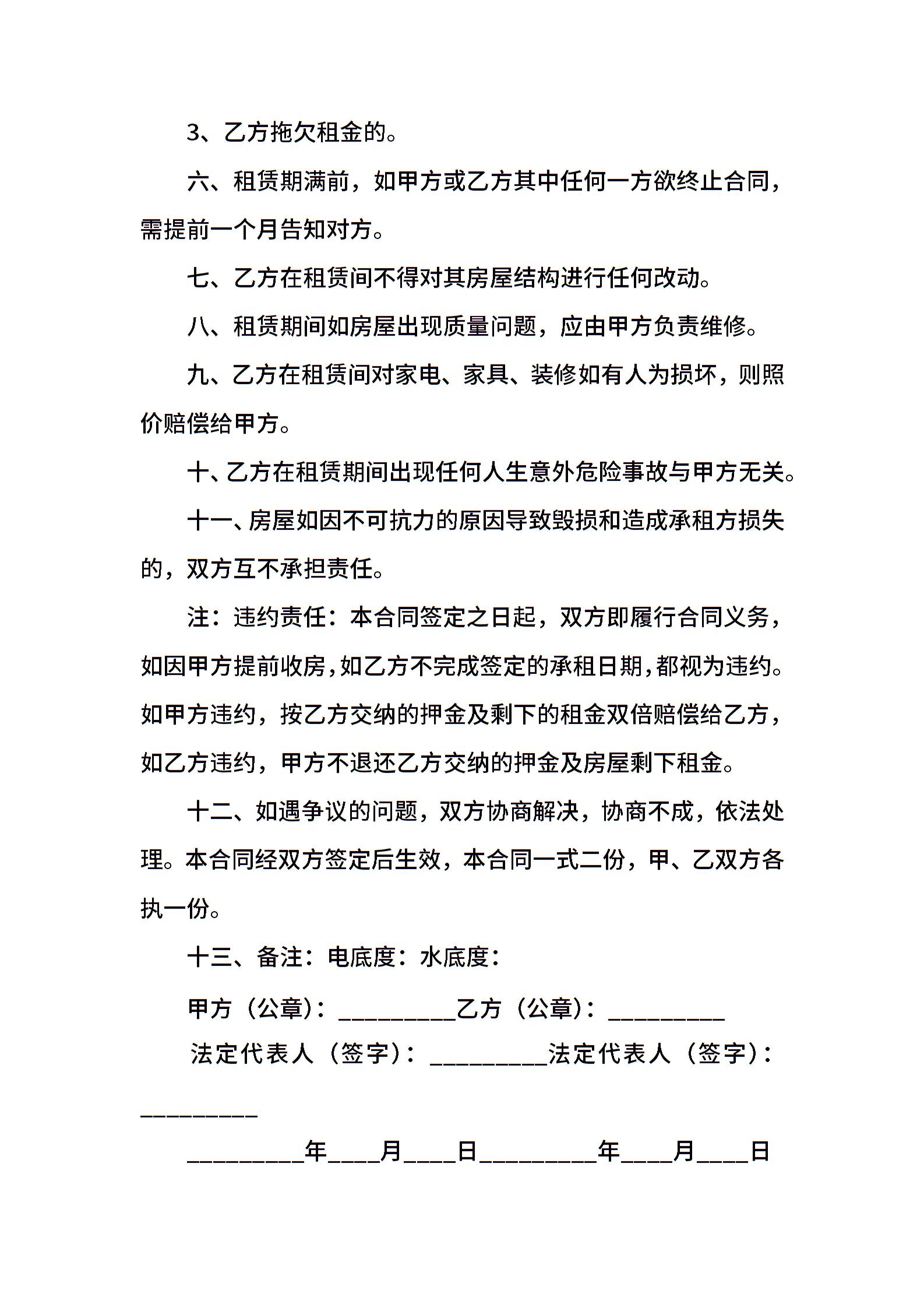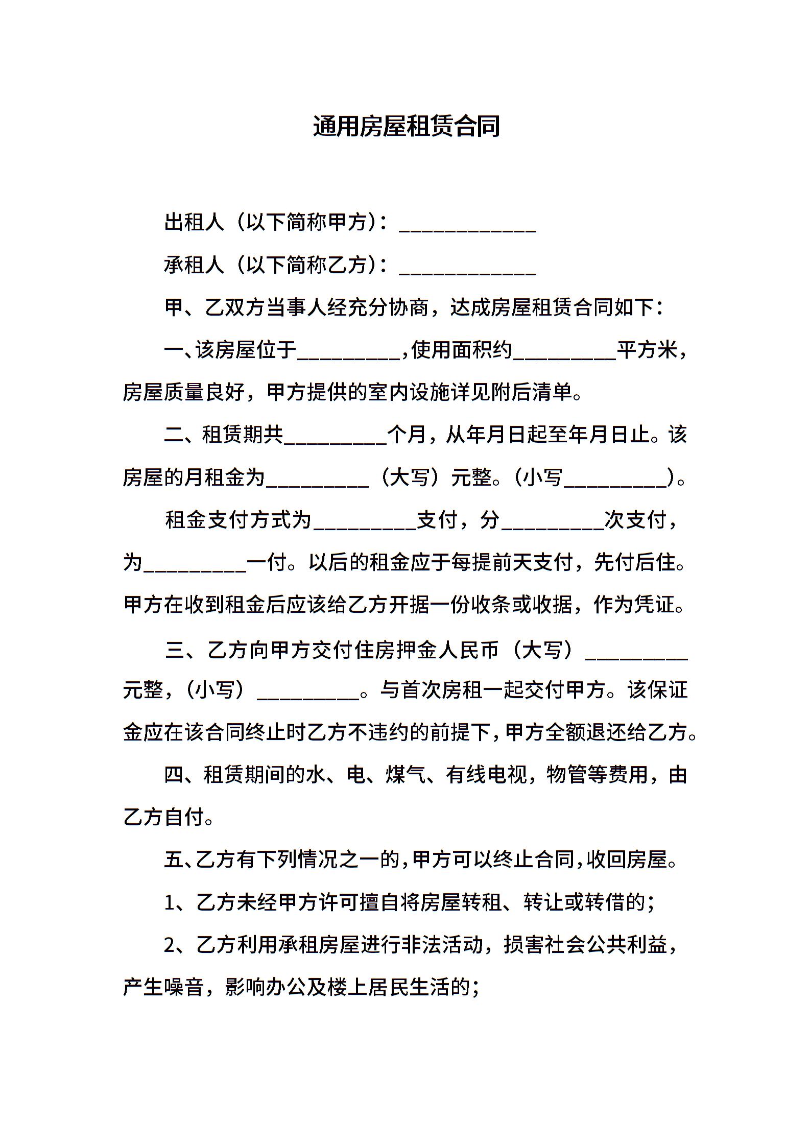 通用房屋租赁合同