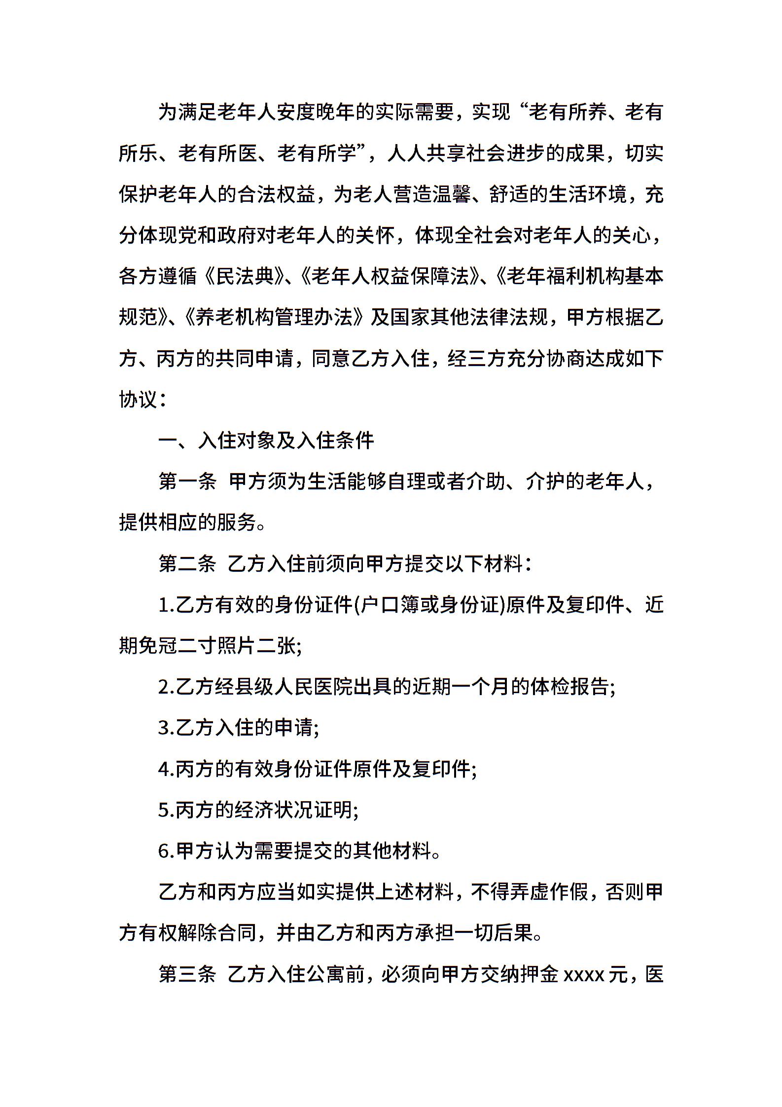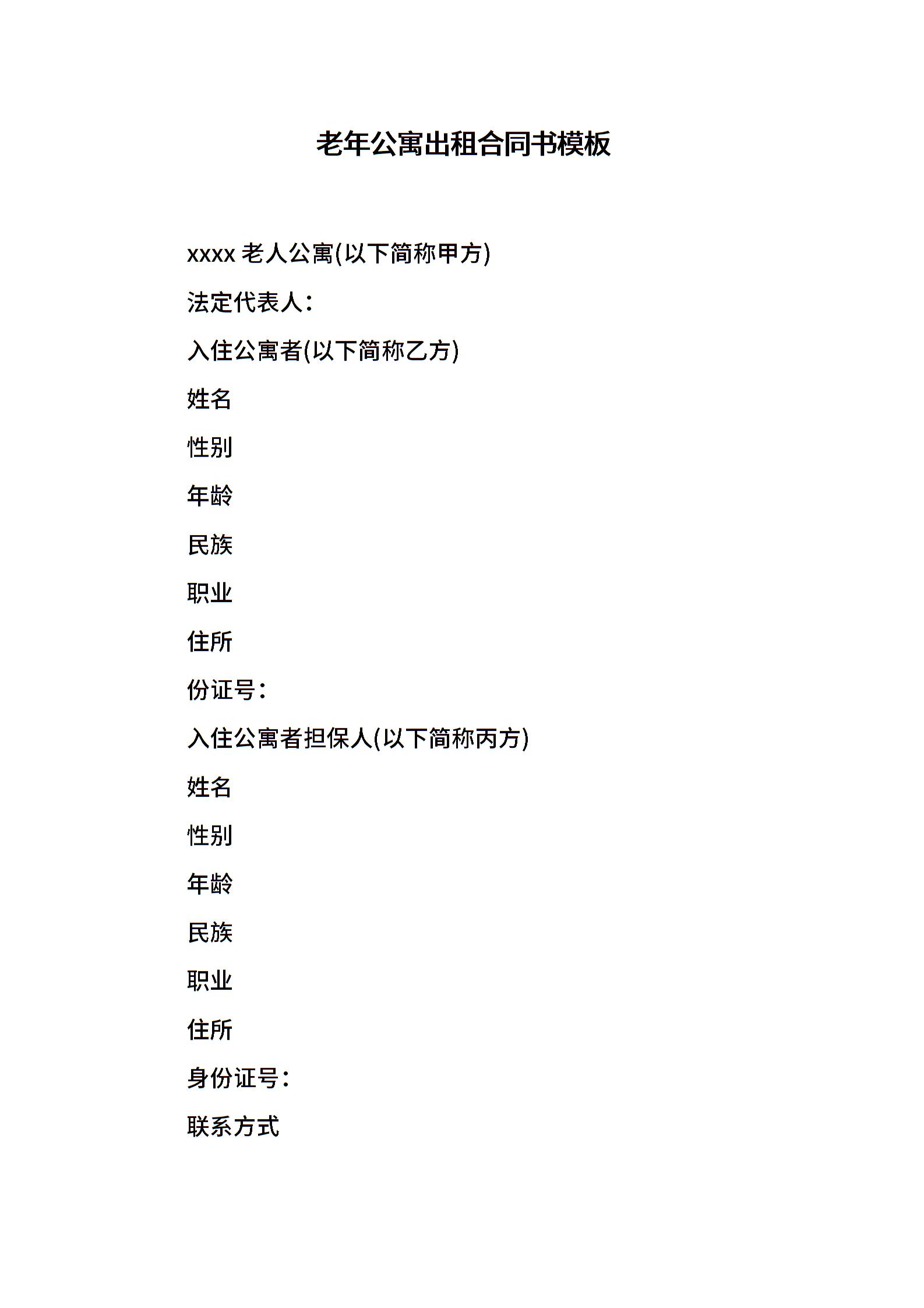 老年公寓出租合同书模板