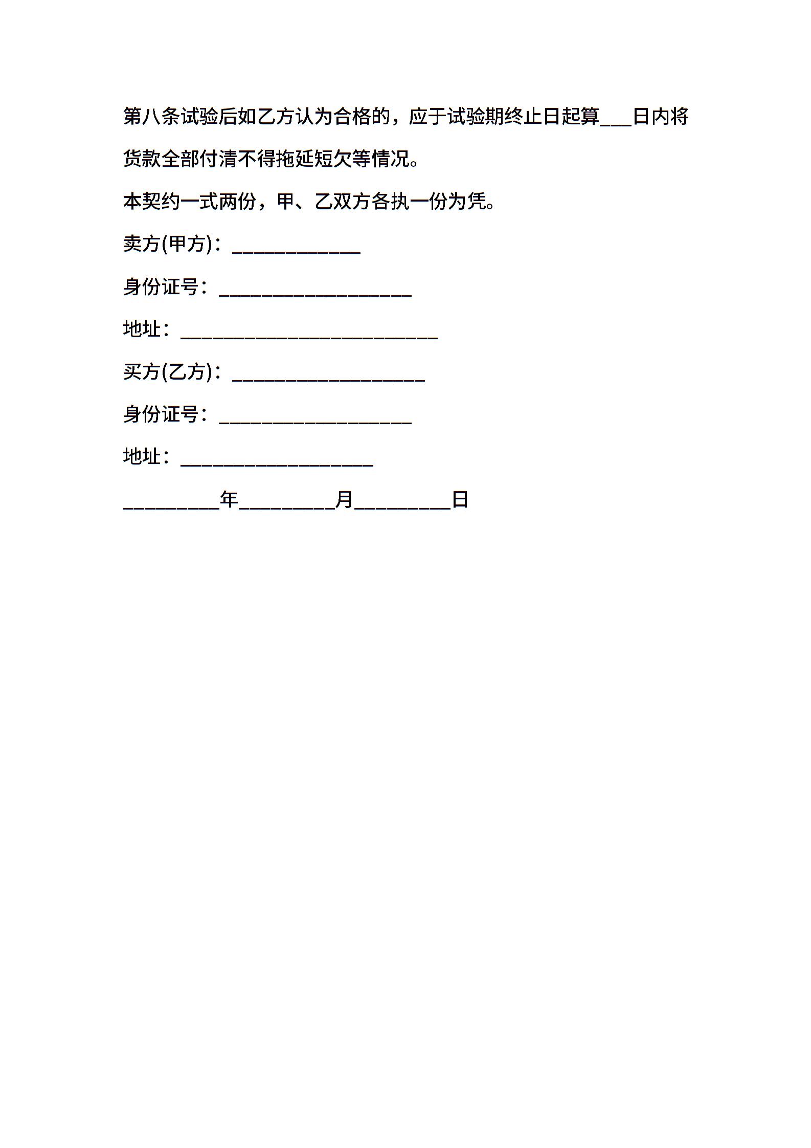 当前位置:量子办公 > 合同模板 > 买卖合同 >