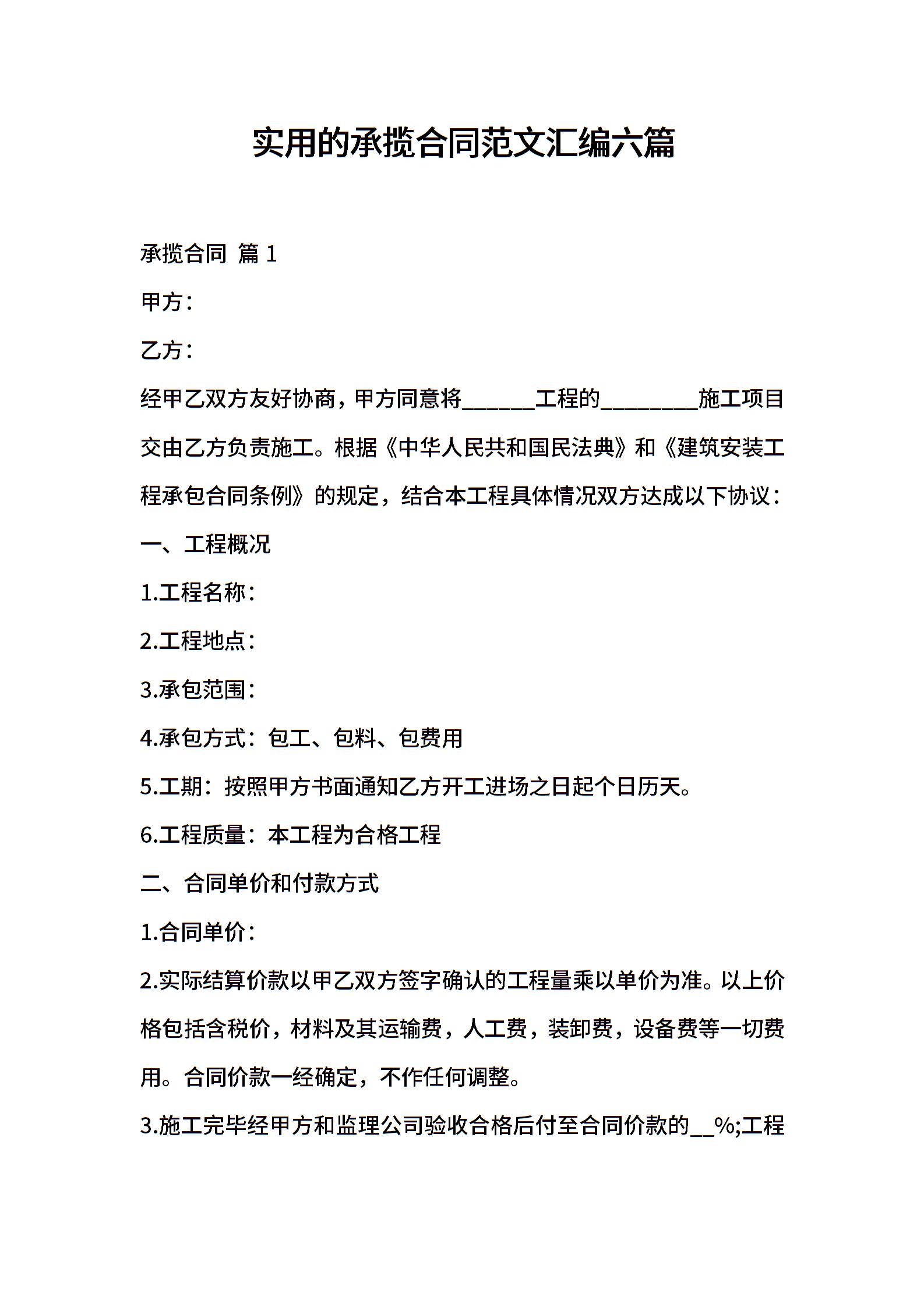 实用的承揽合同范文汇编六篇