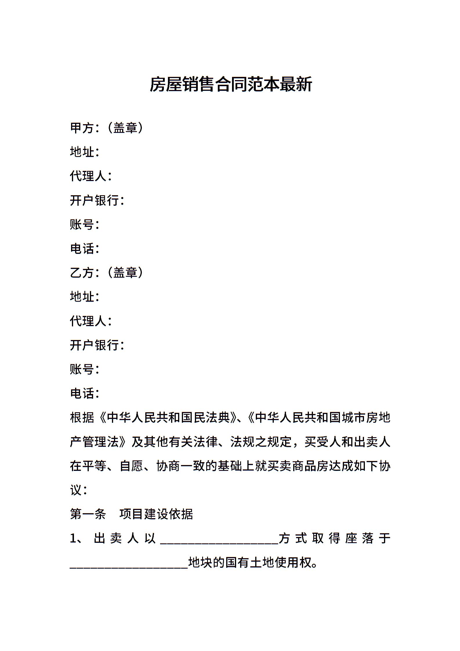 房屋销售合同范本最新