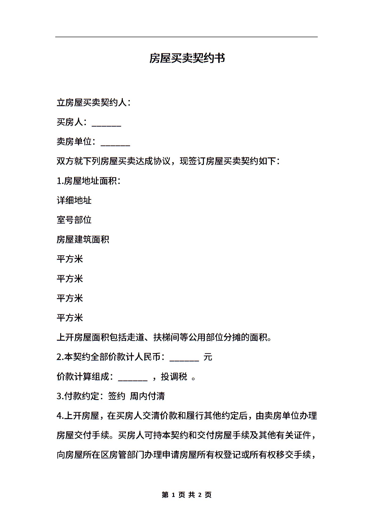 房屋买卖契约书
