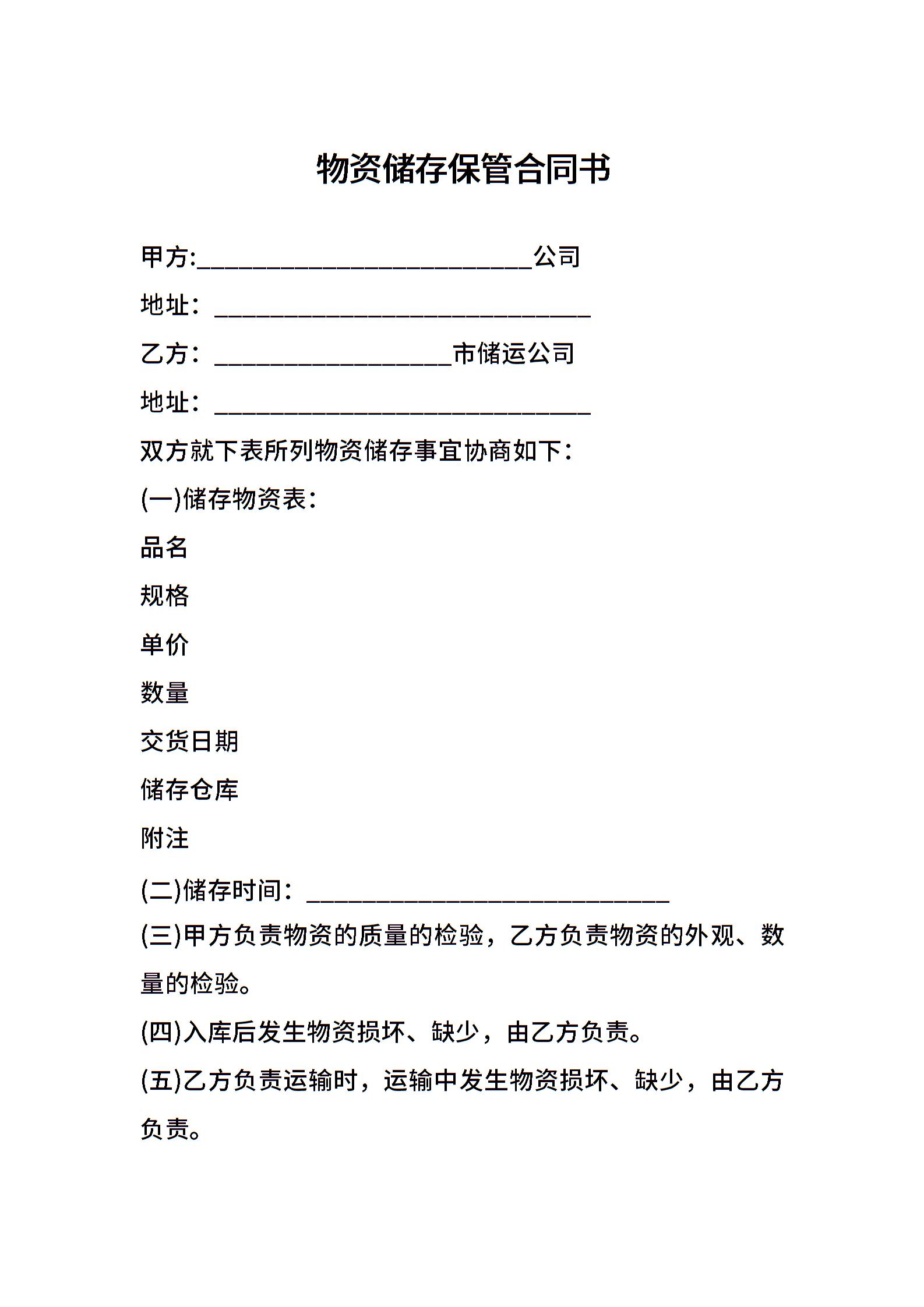 物资储存保管合同书