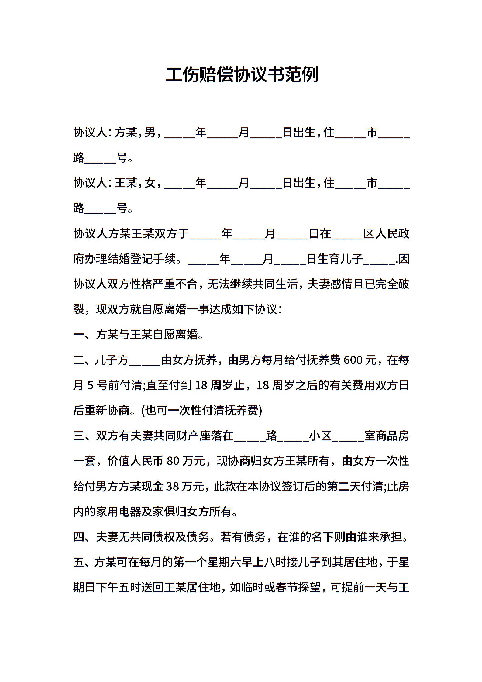 工伤赔偿协议书范例