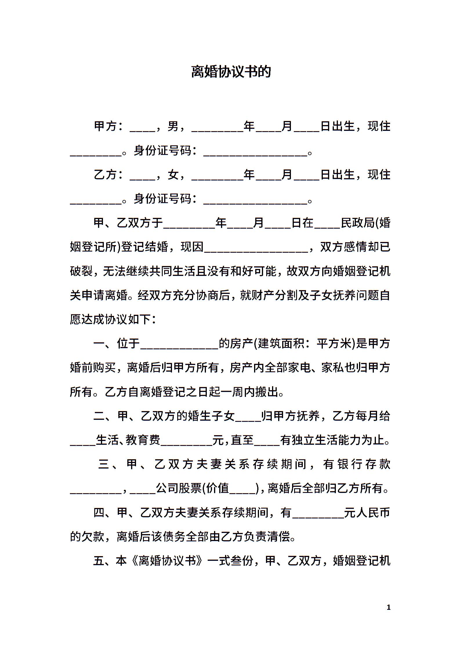 离婚协议书的