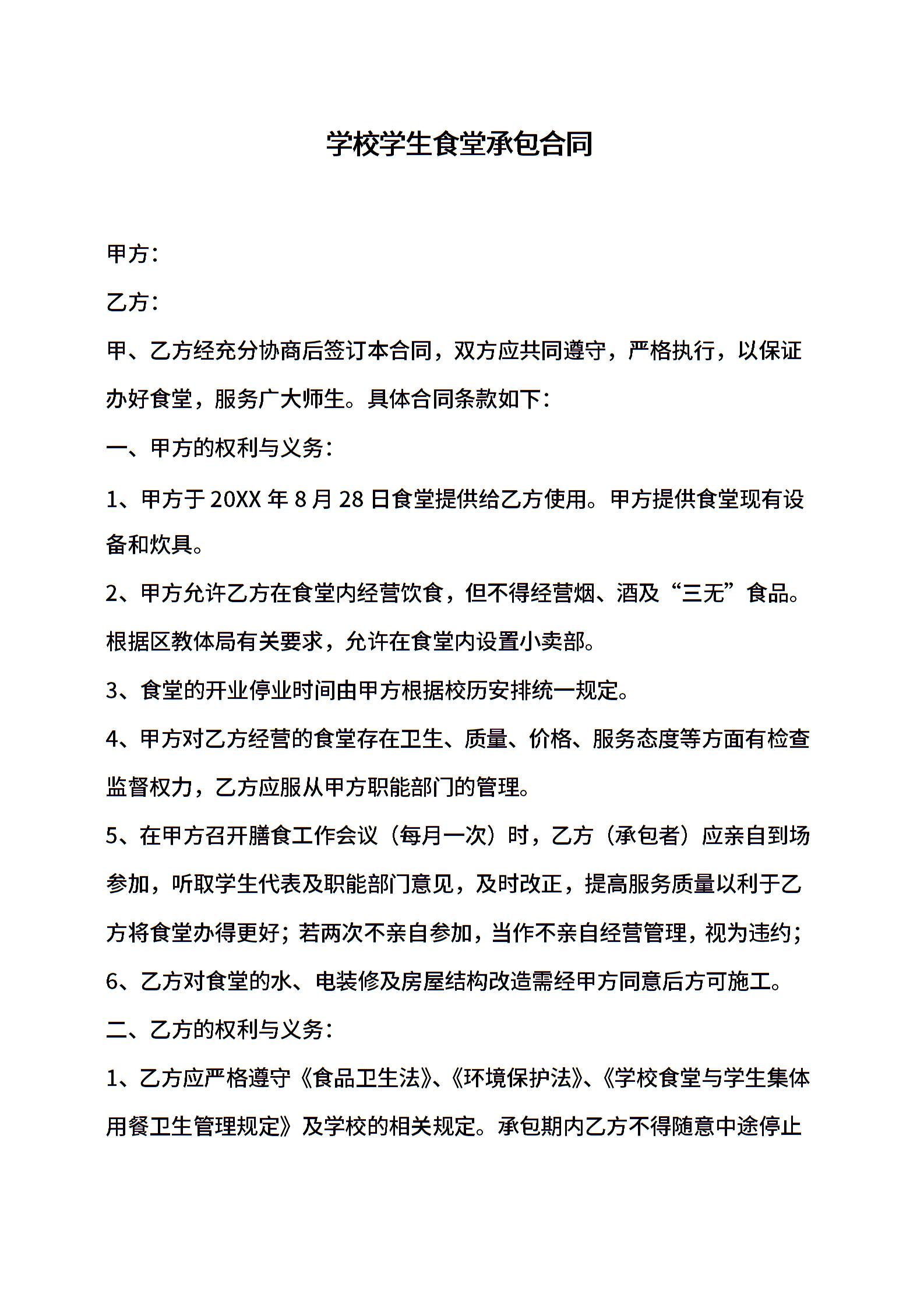 学校学生食堂承包合同书
