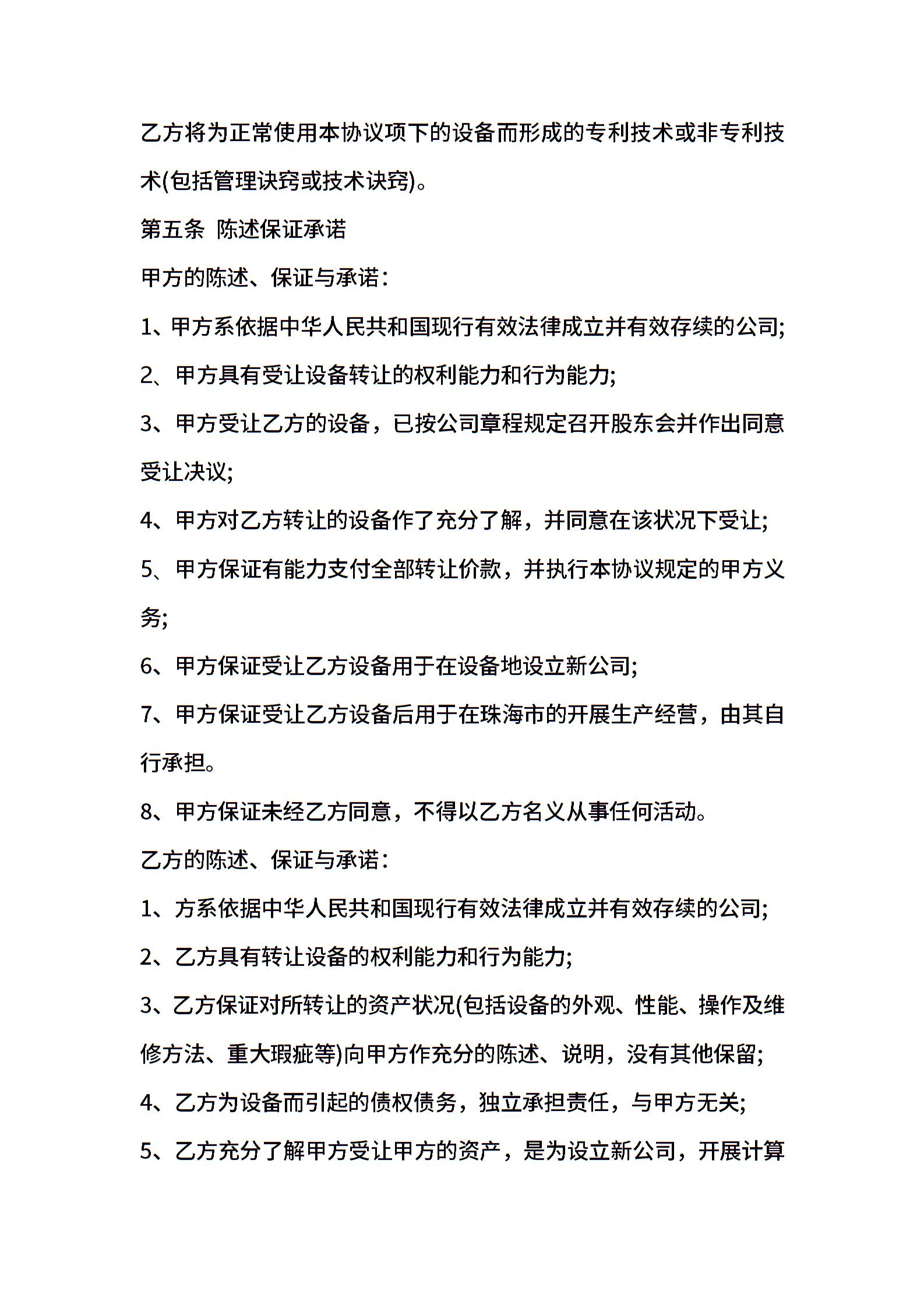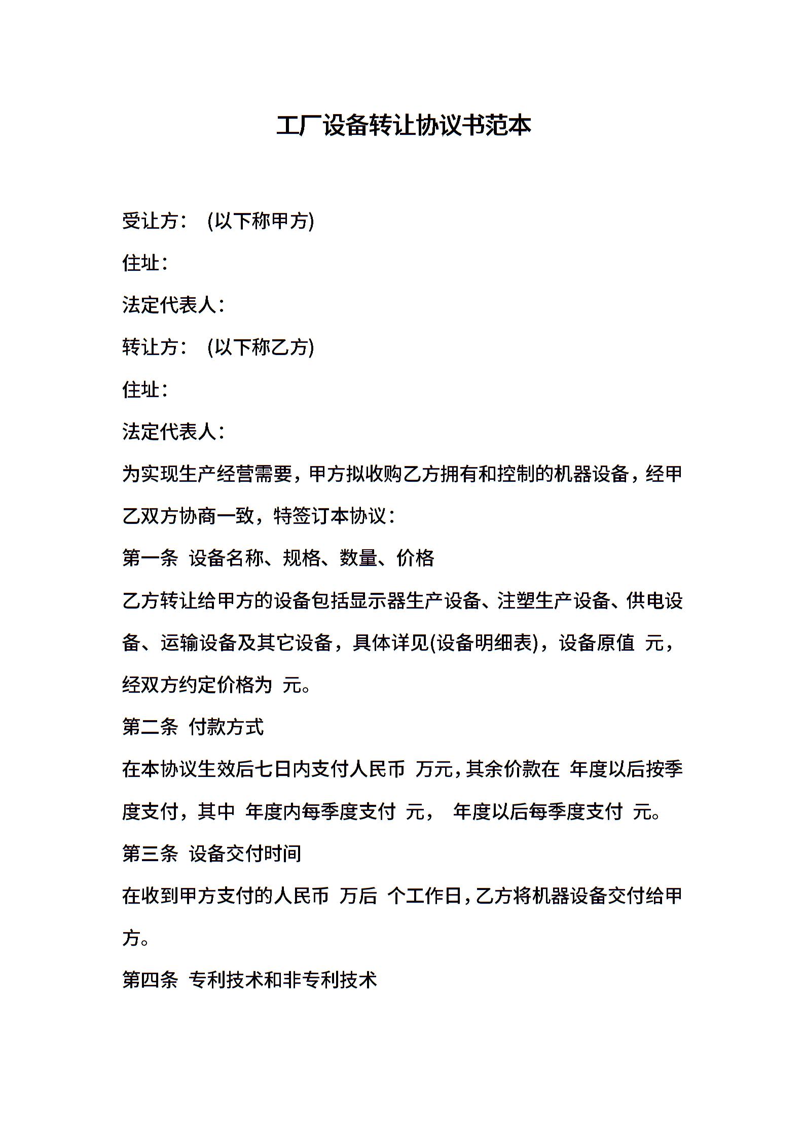 工厂设备转让协议书范本