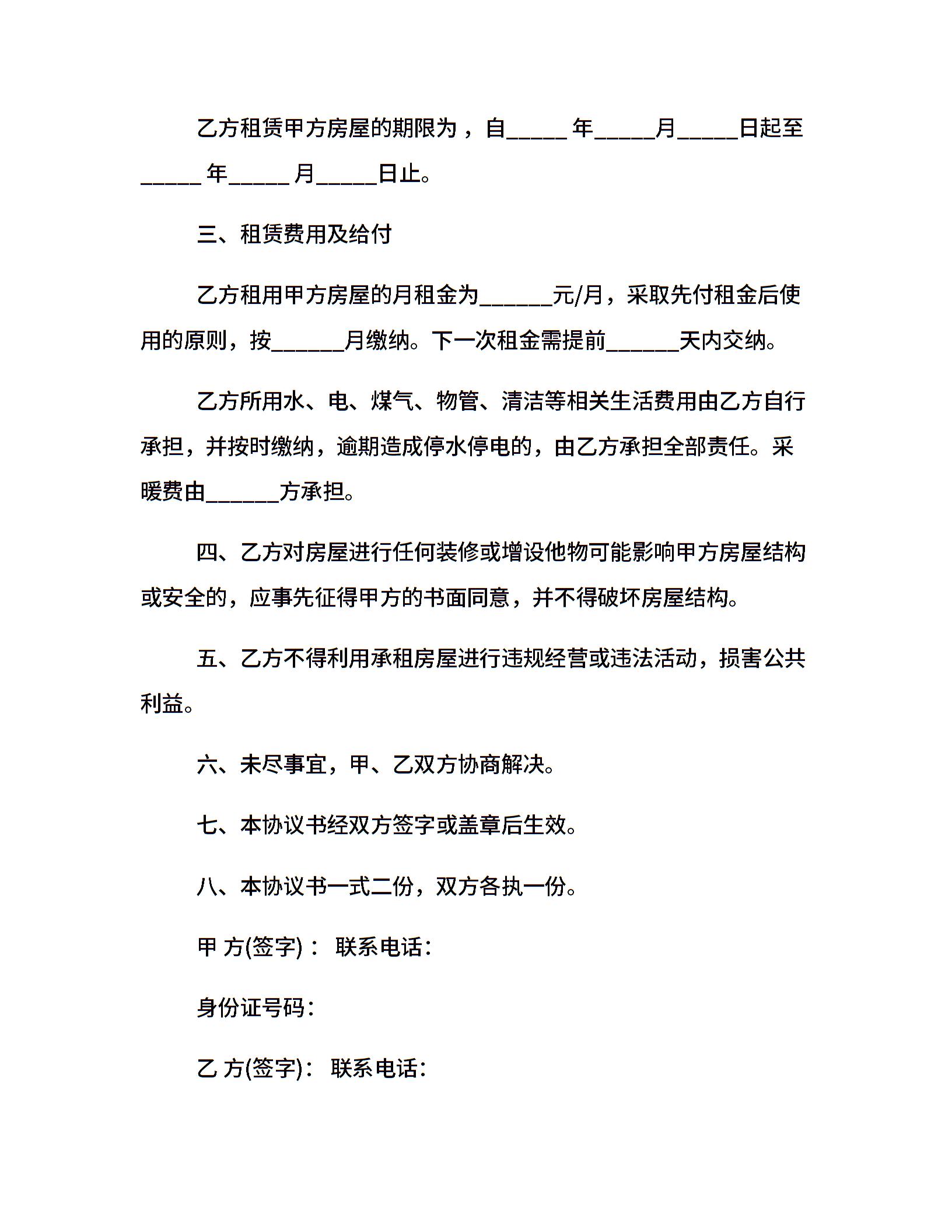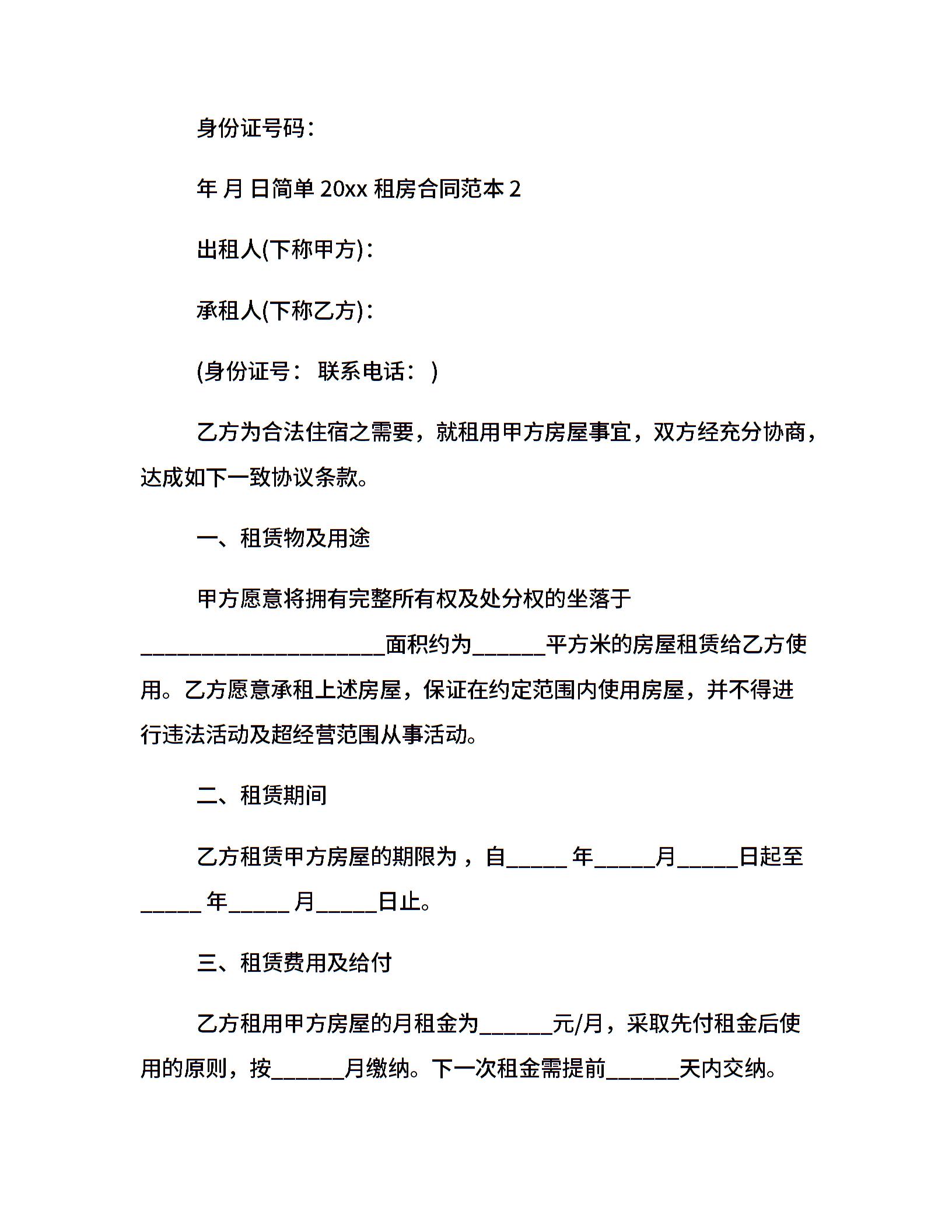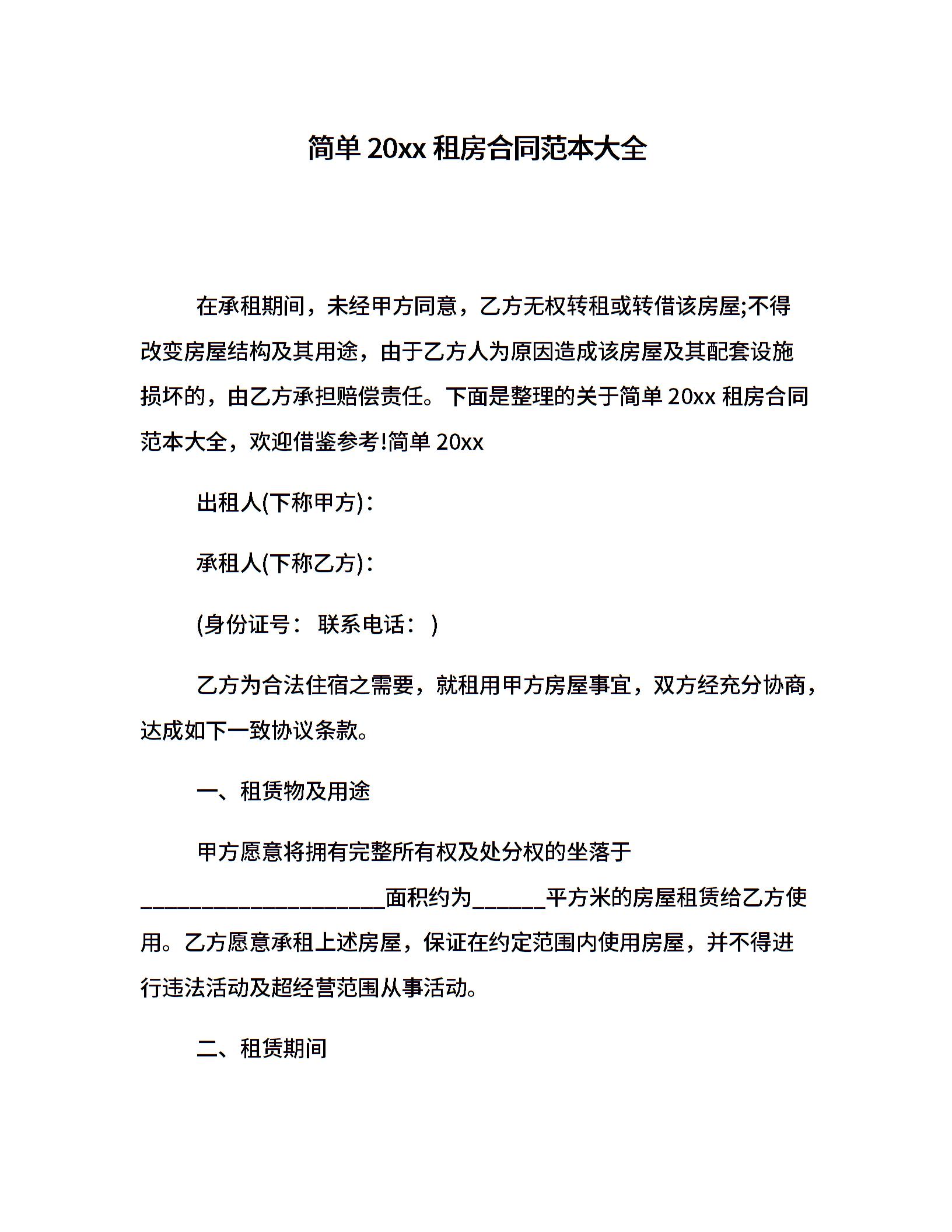 简单20xx租房合同范本大全
