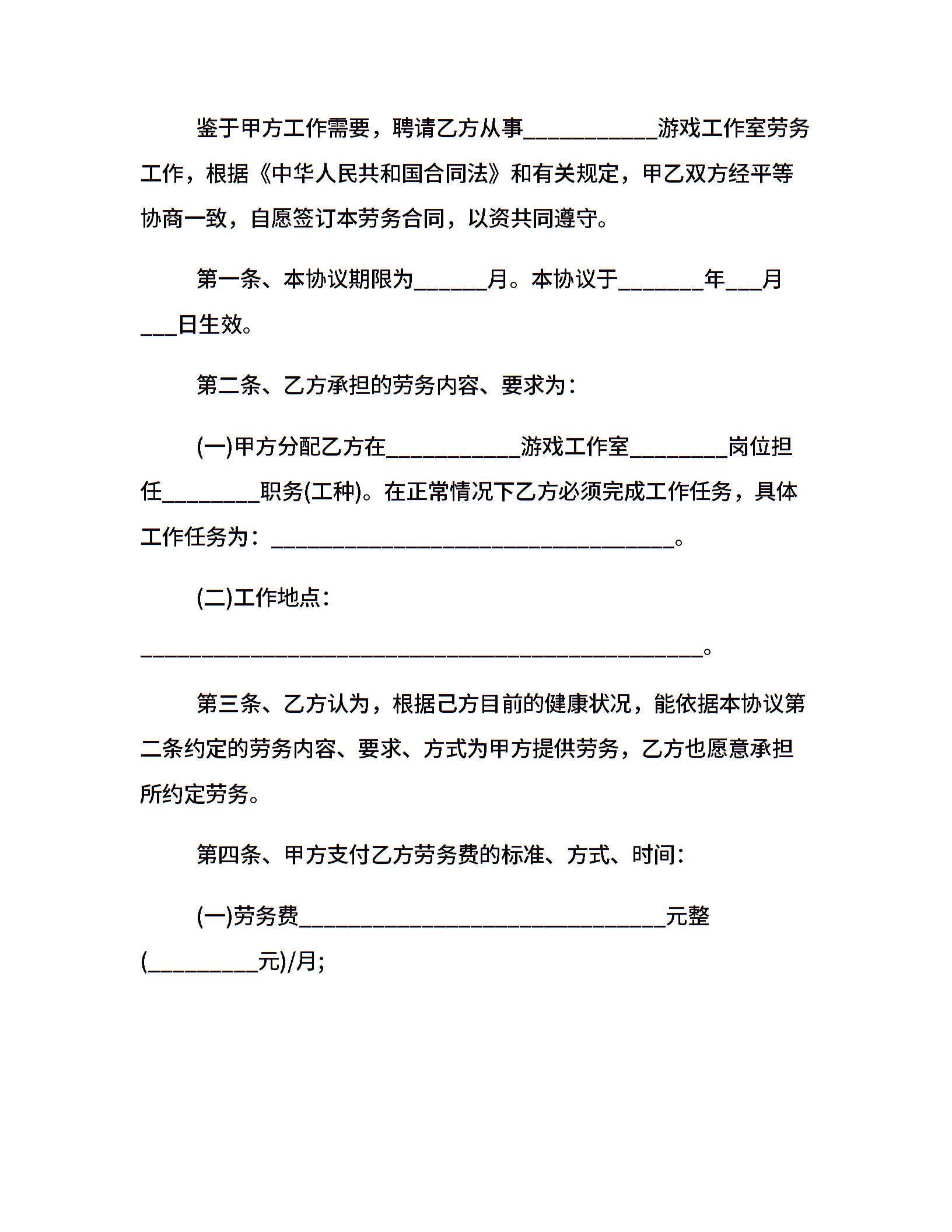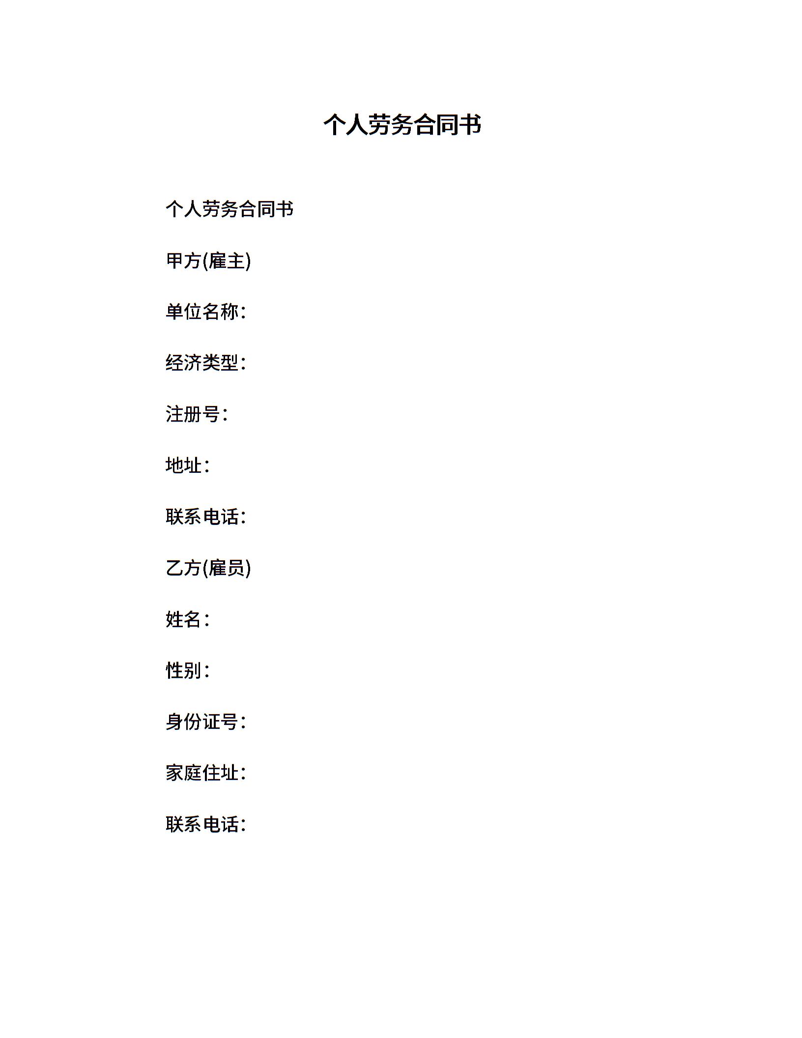 个人劳务合同书