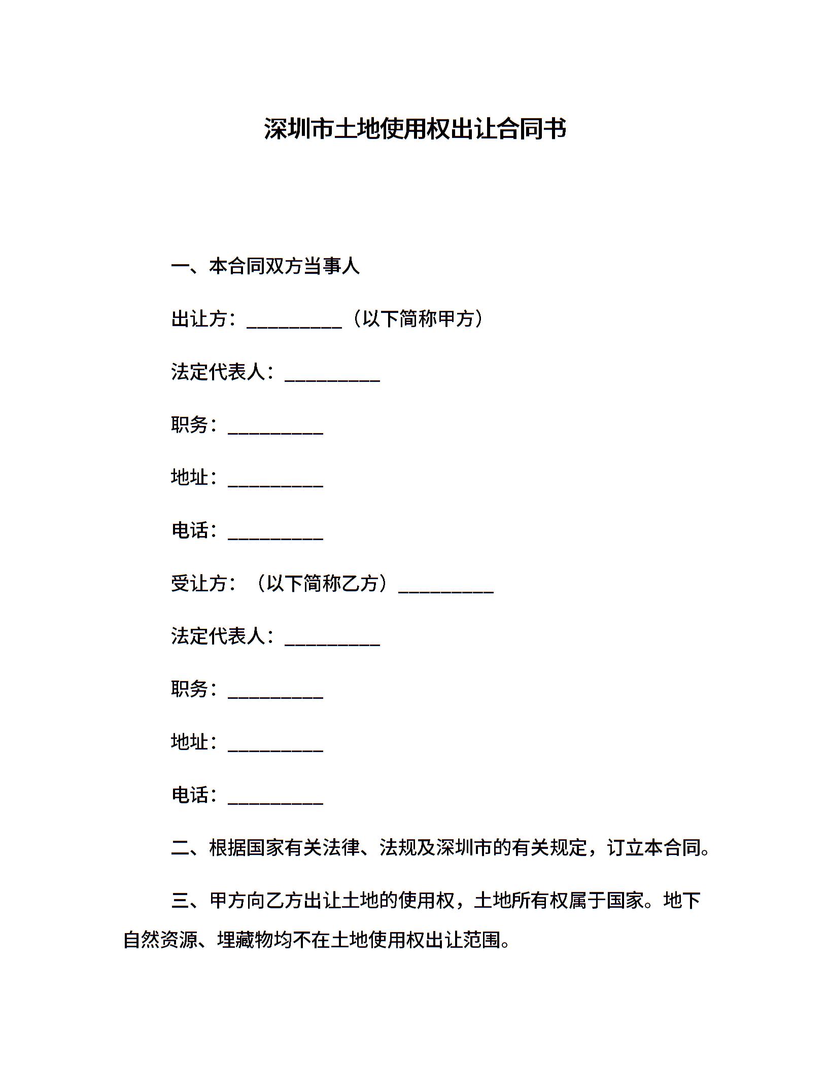 深圳市土地使用权出让合同书