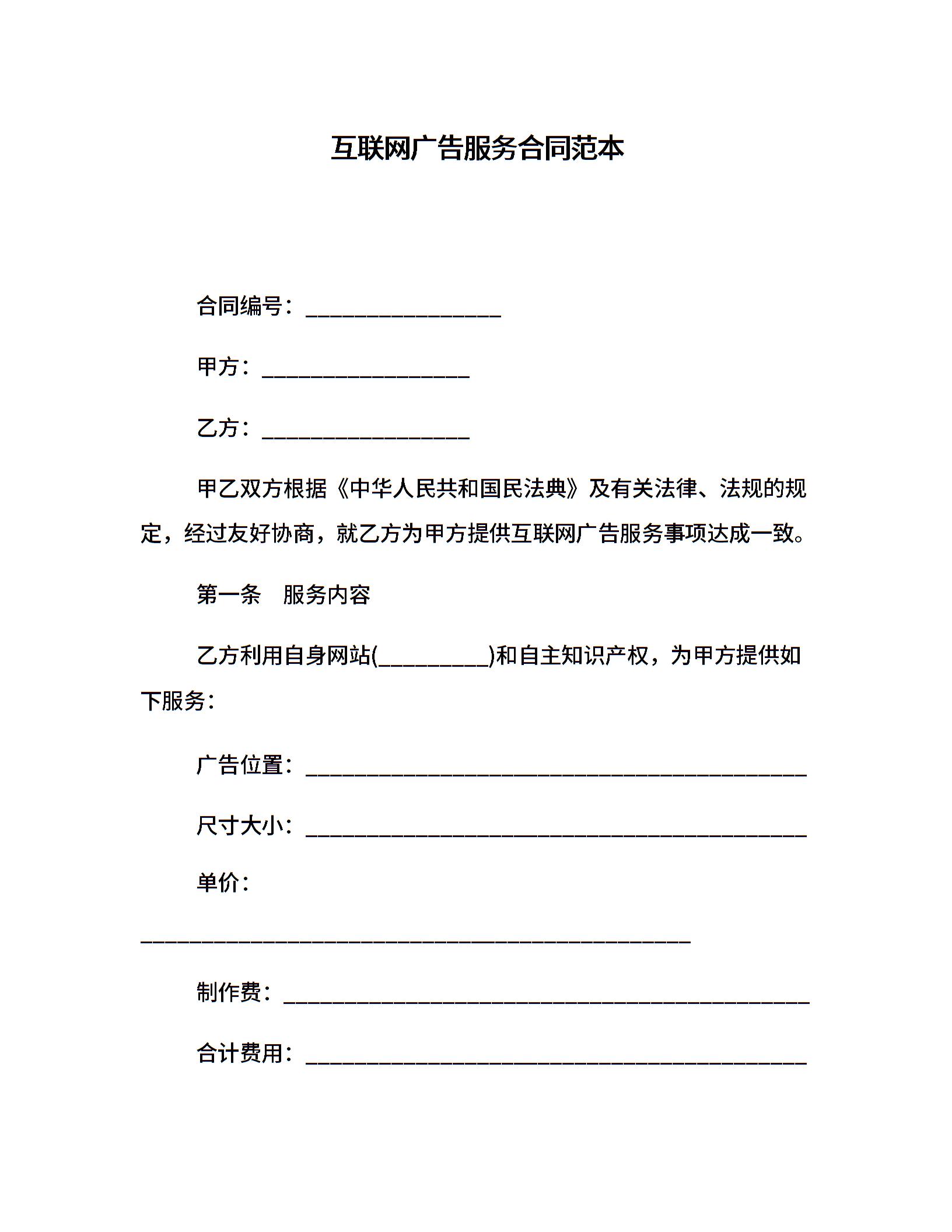 互联网广告服务合同范本