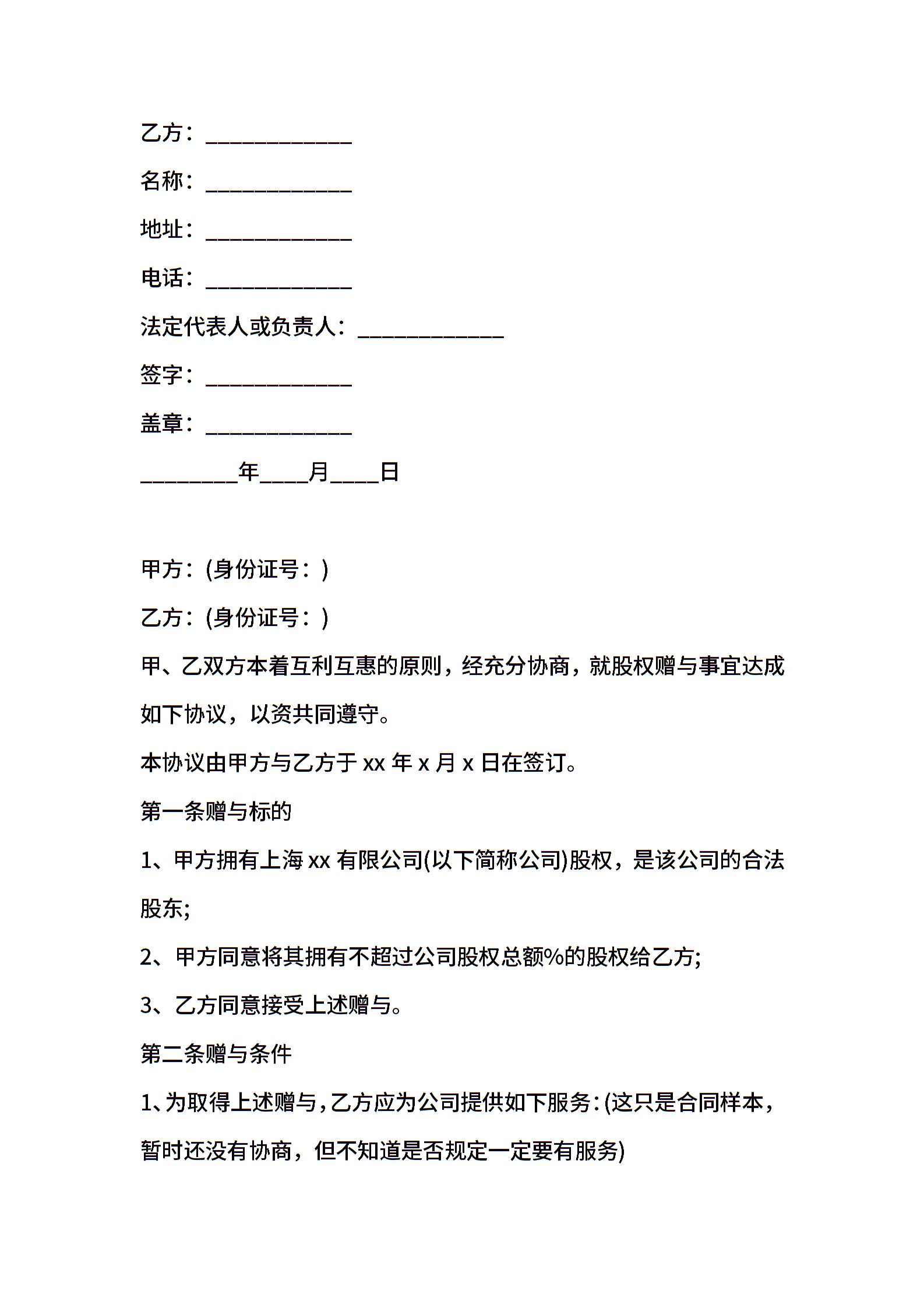 企业赠与合同模板