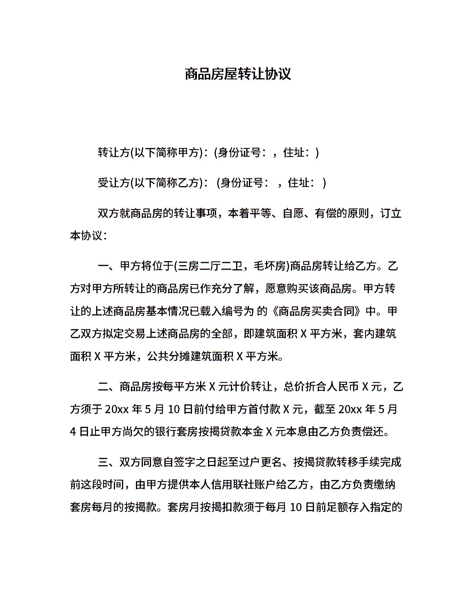 商品房屋转让协议
