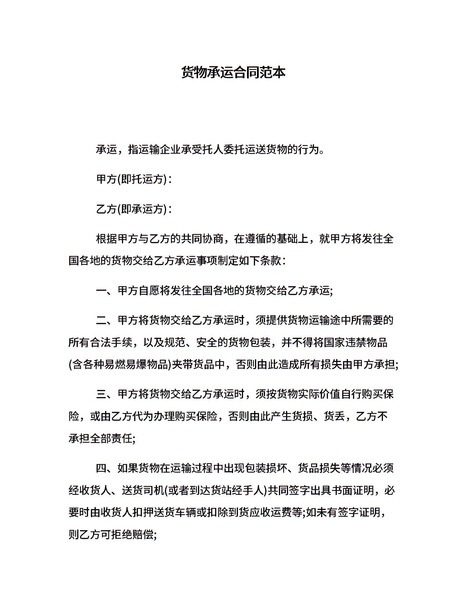 货物承运合同范本