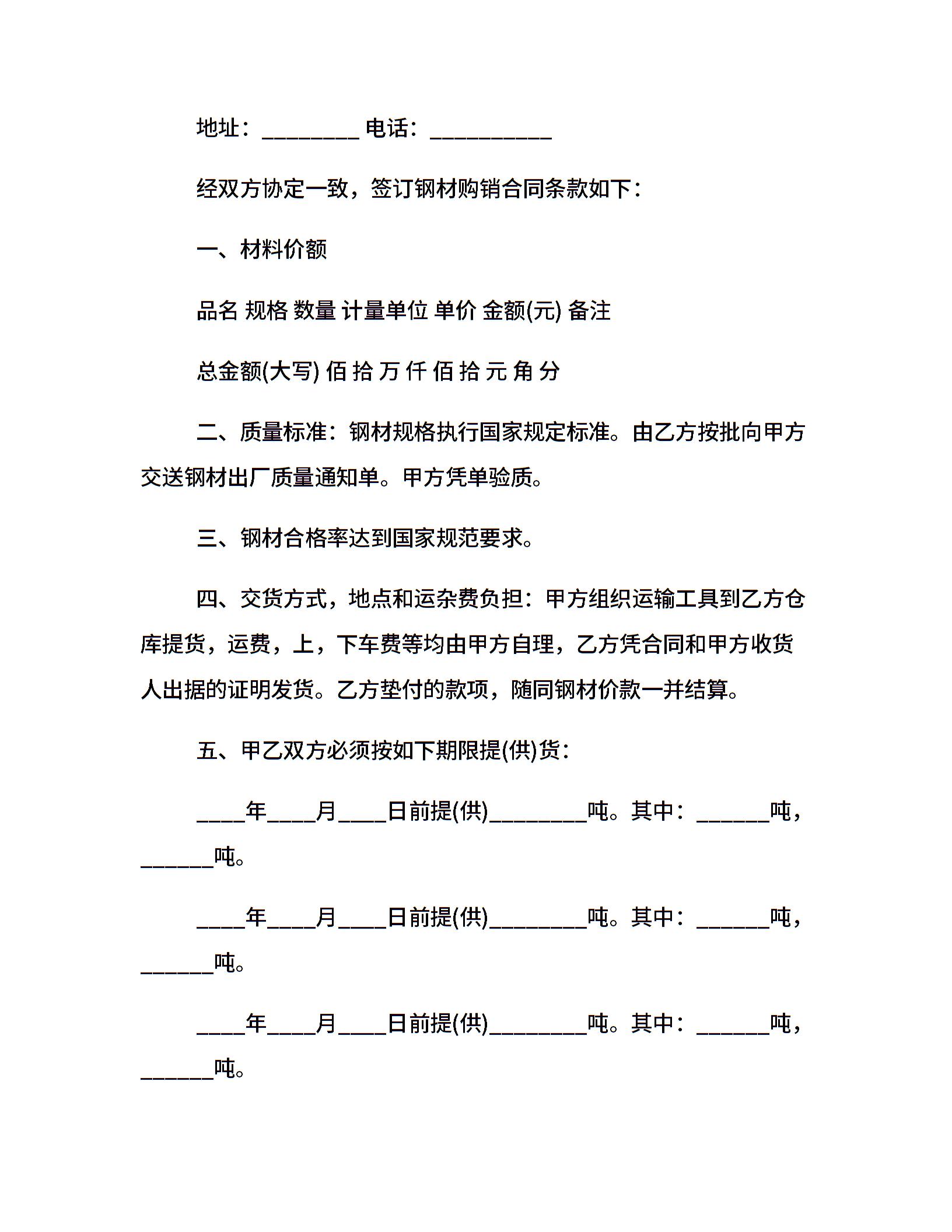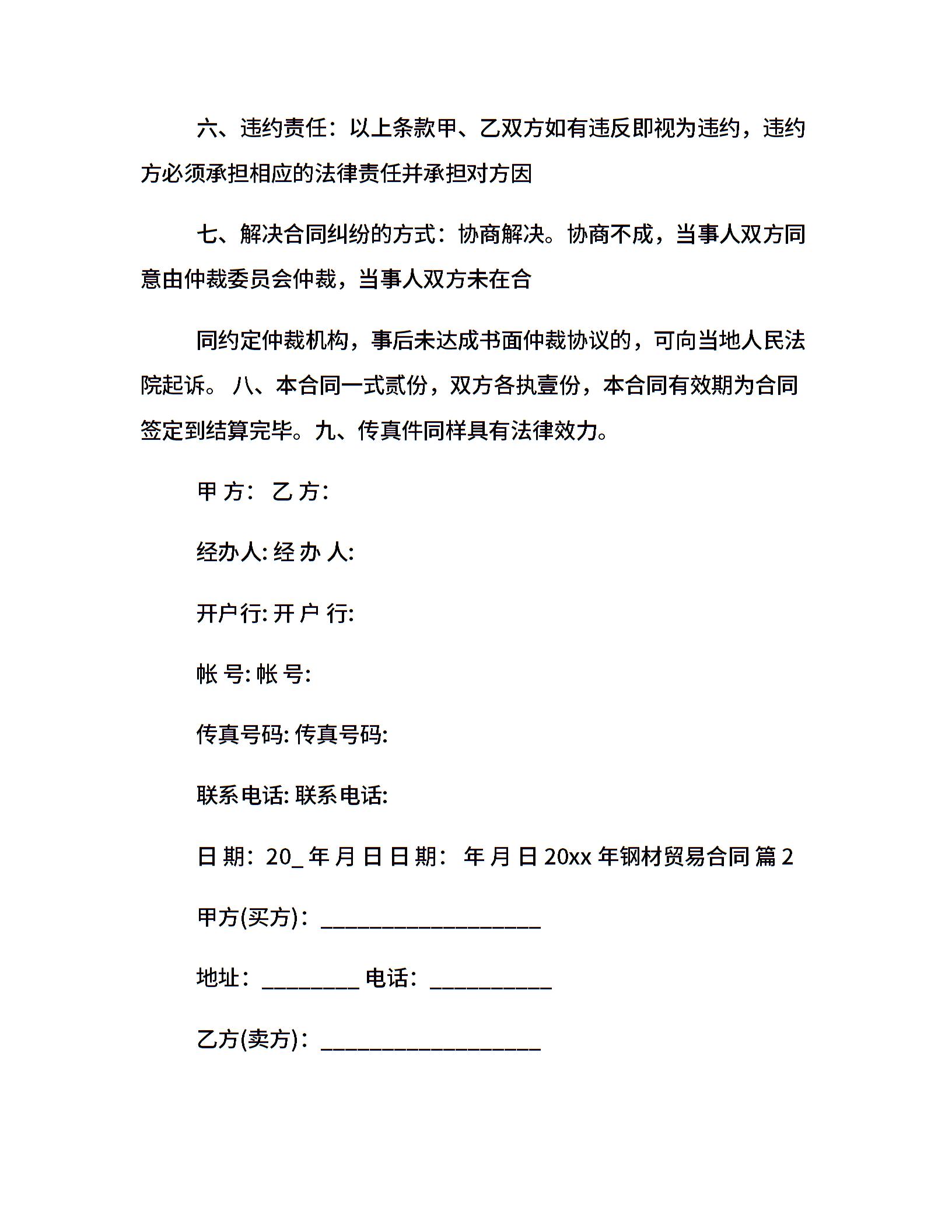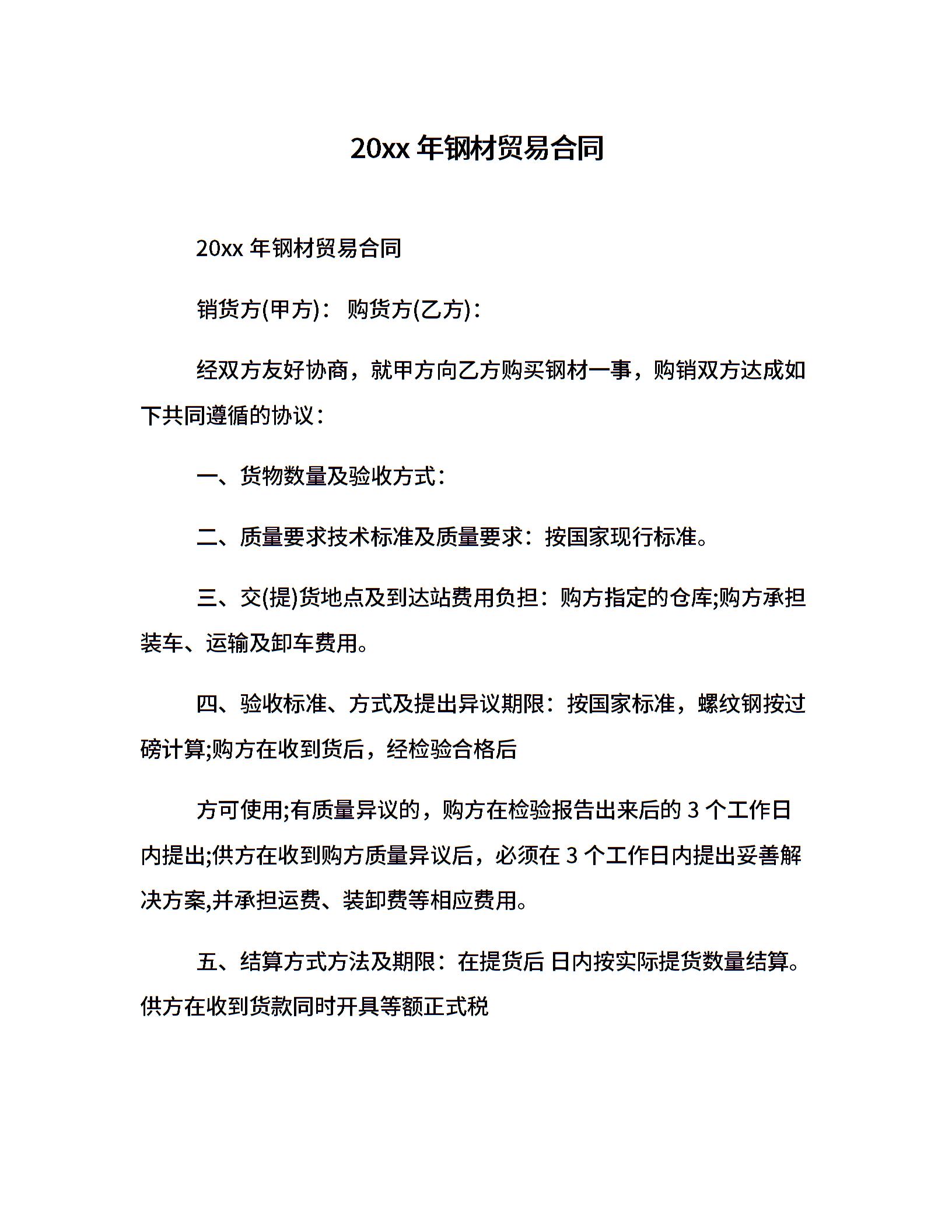 20xx年钢材贸易合同