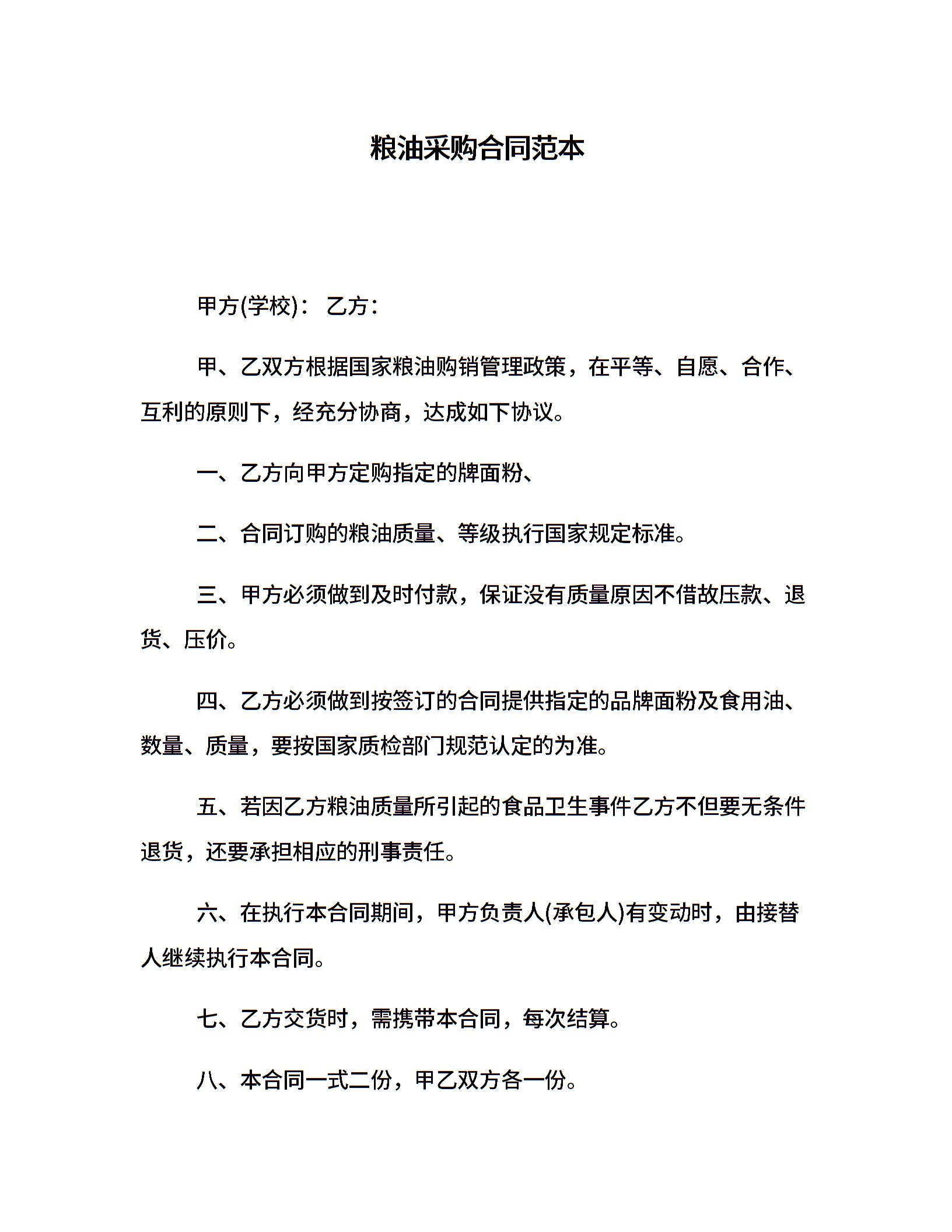 粮油采购合同范本