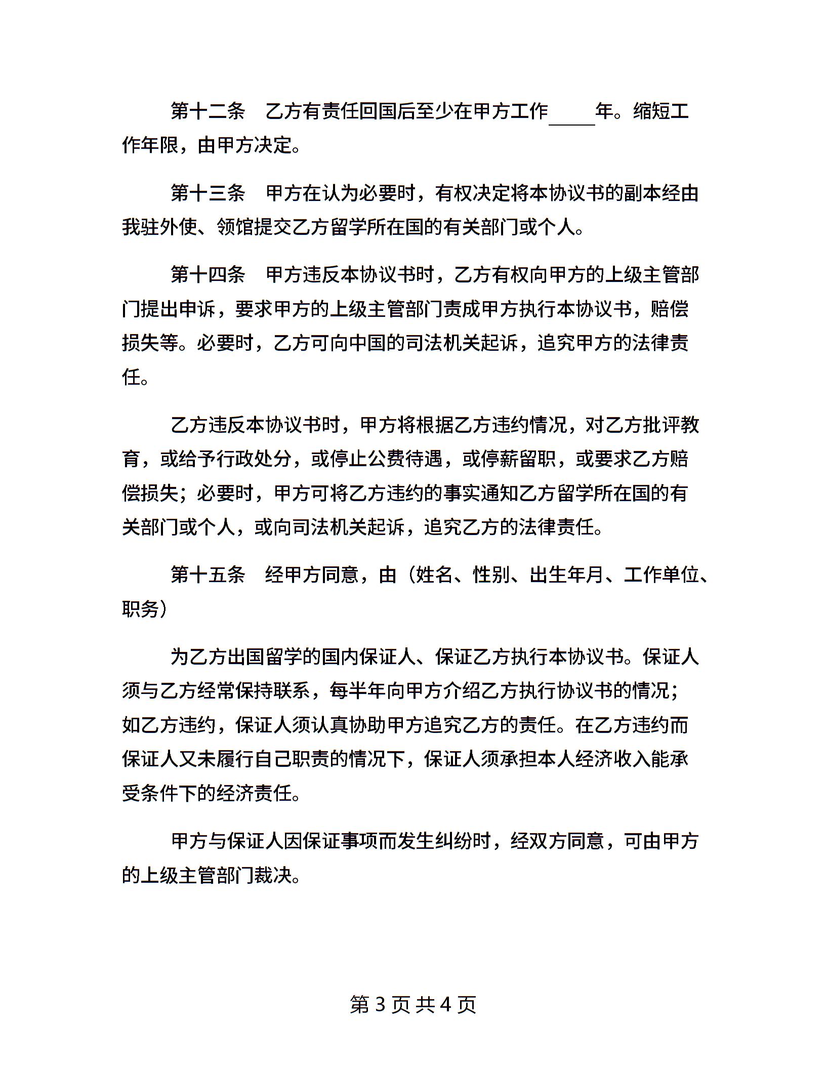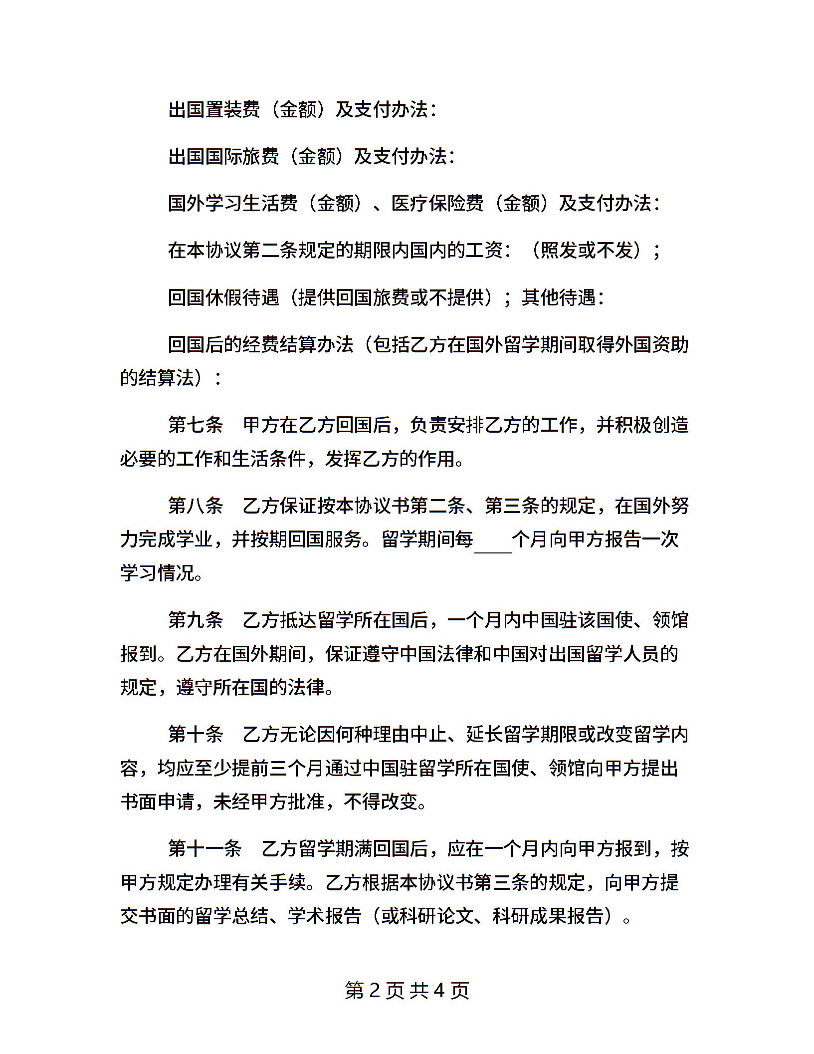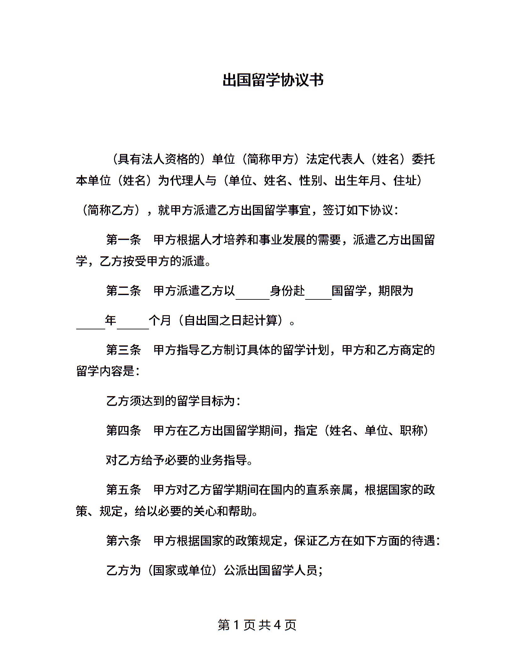 出国留学协议书