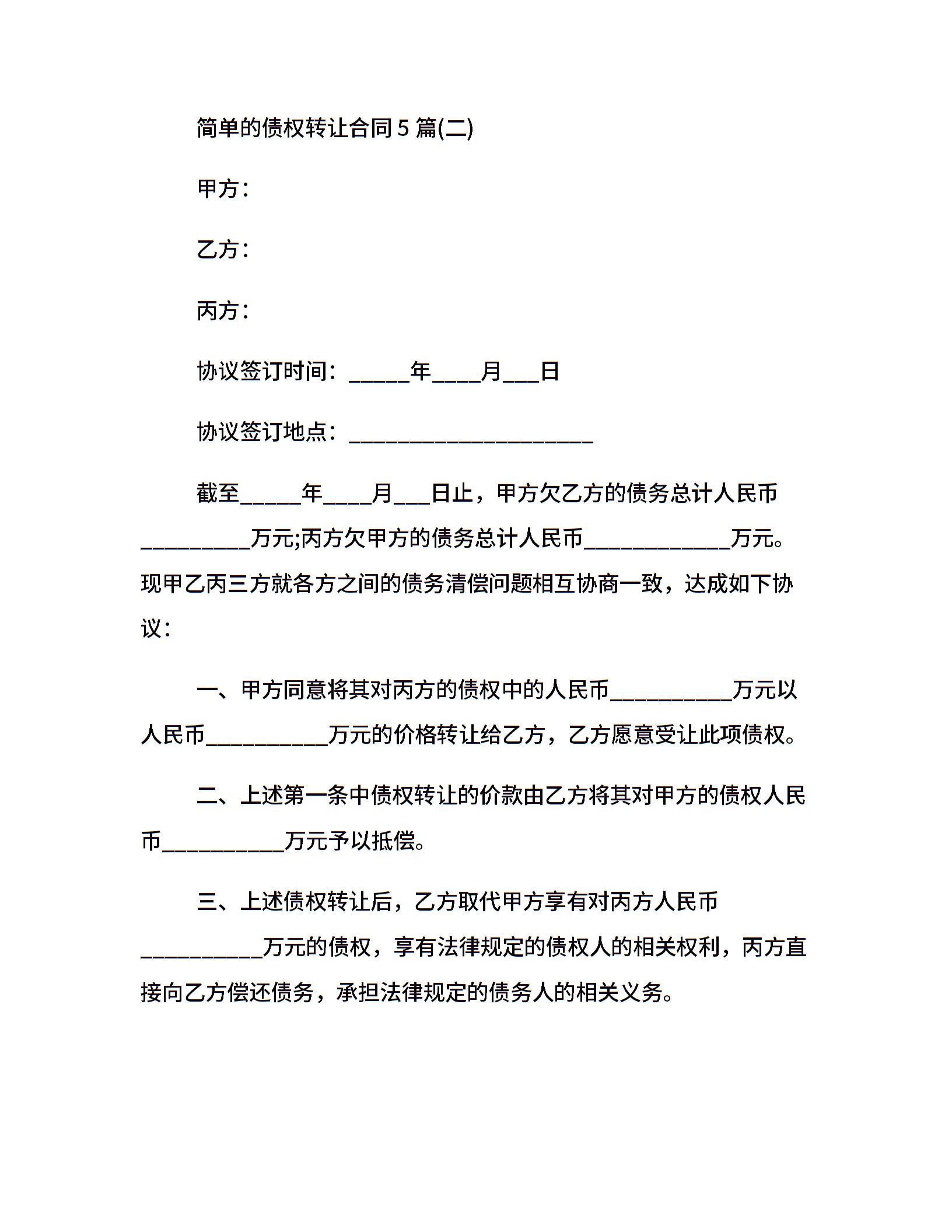 简单的债权转让合同5篇