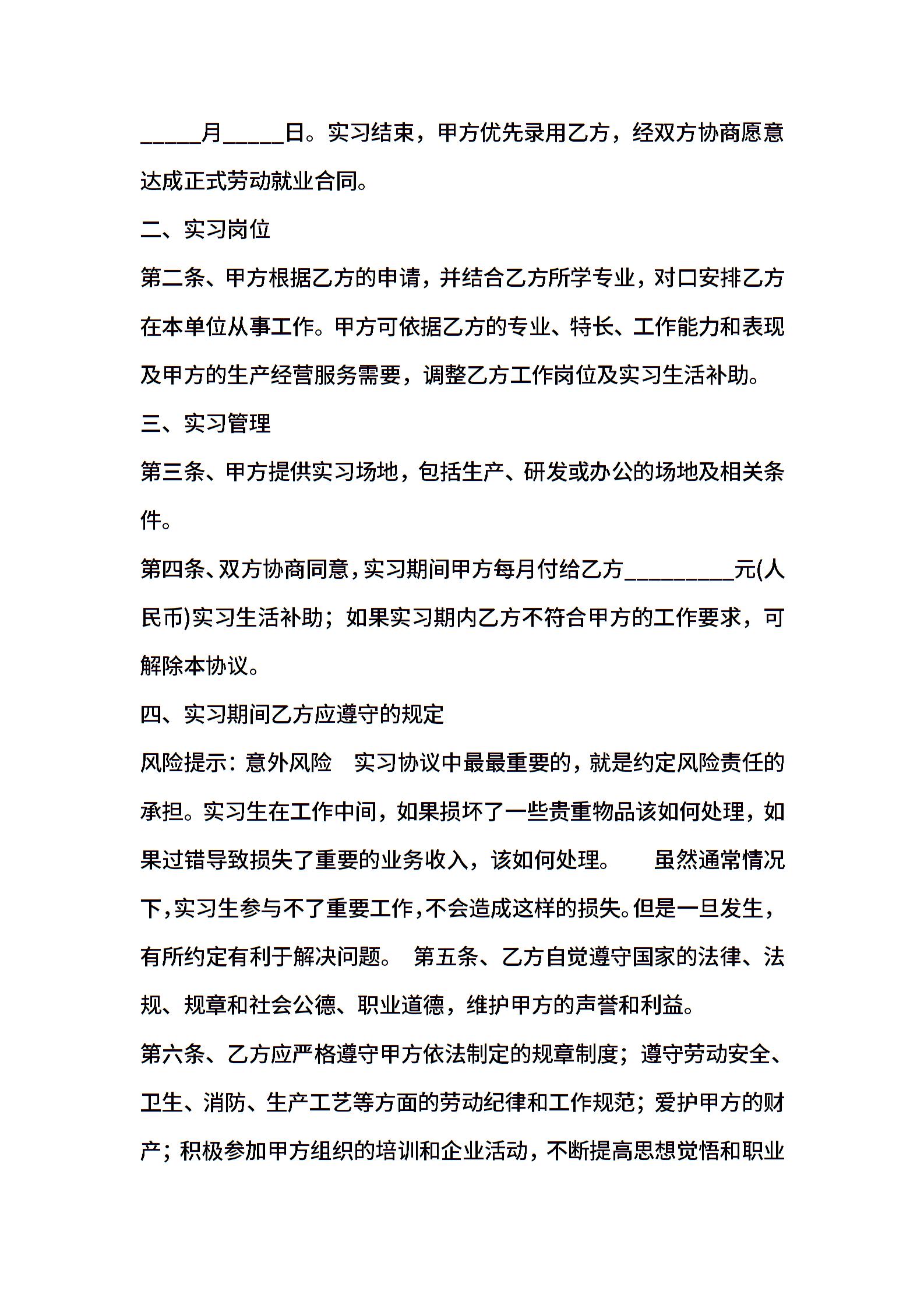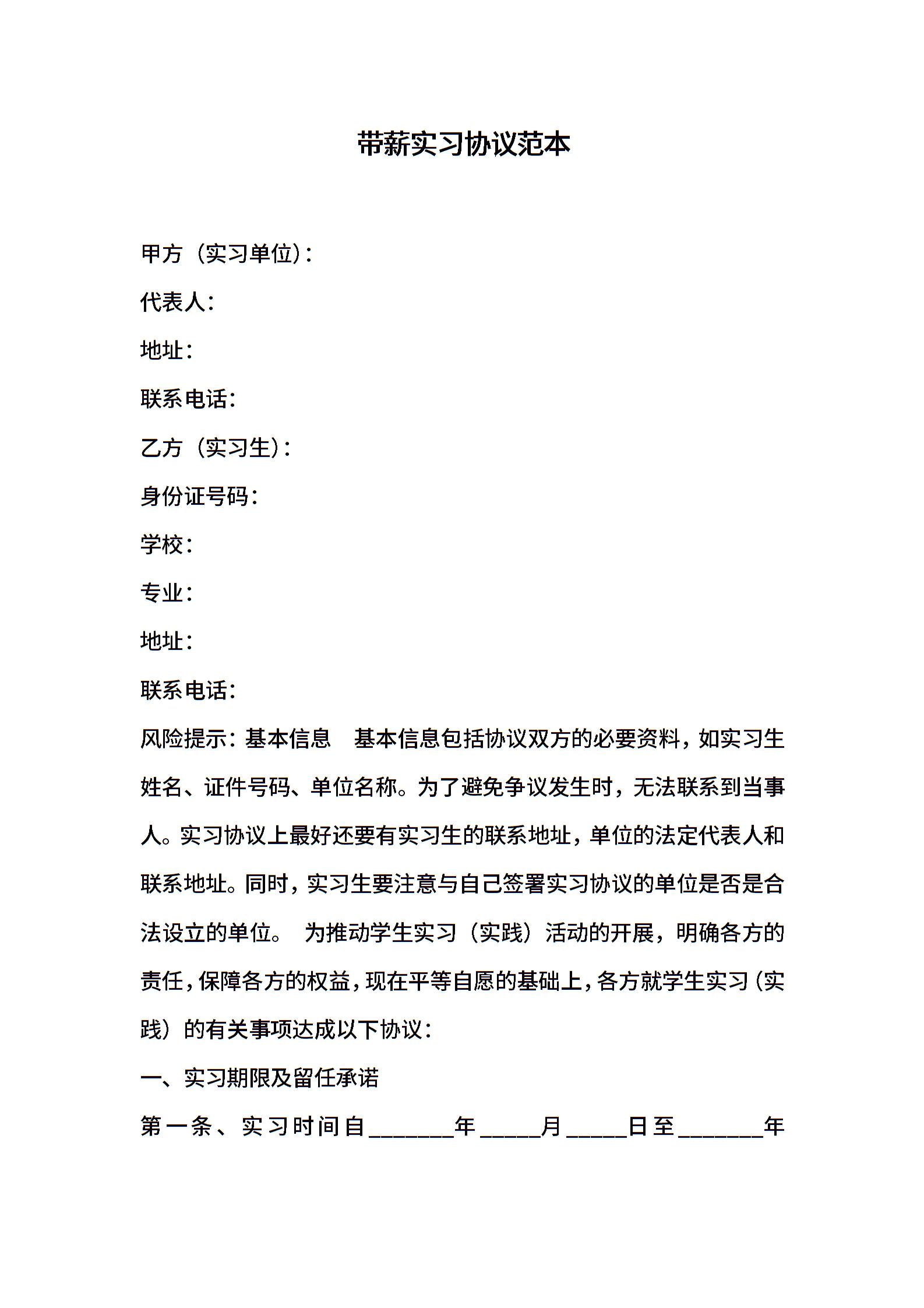 带薪实习协议范本