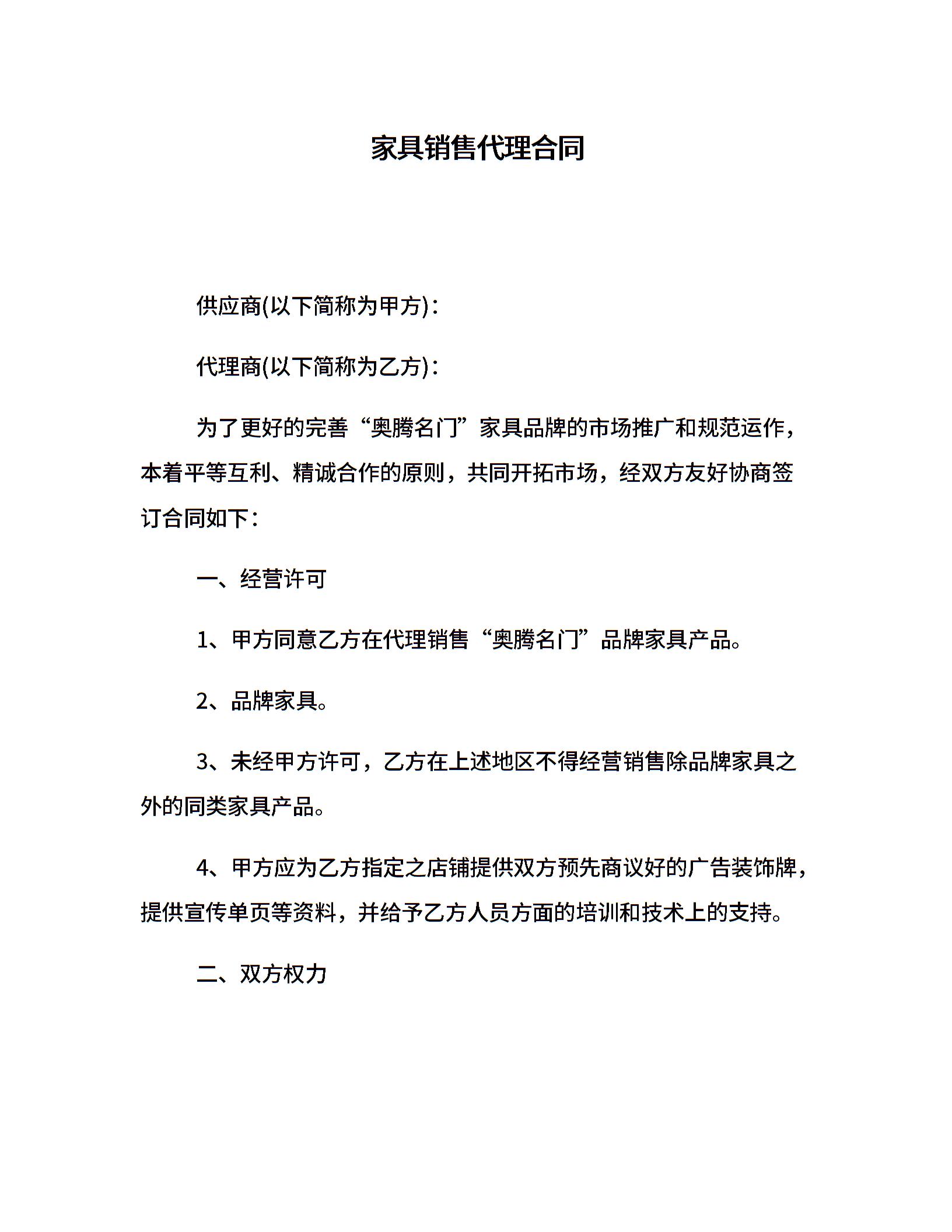 家具销售代理合同