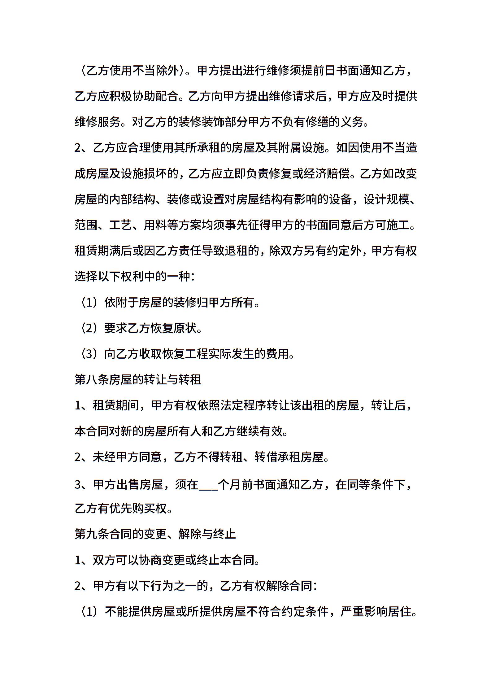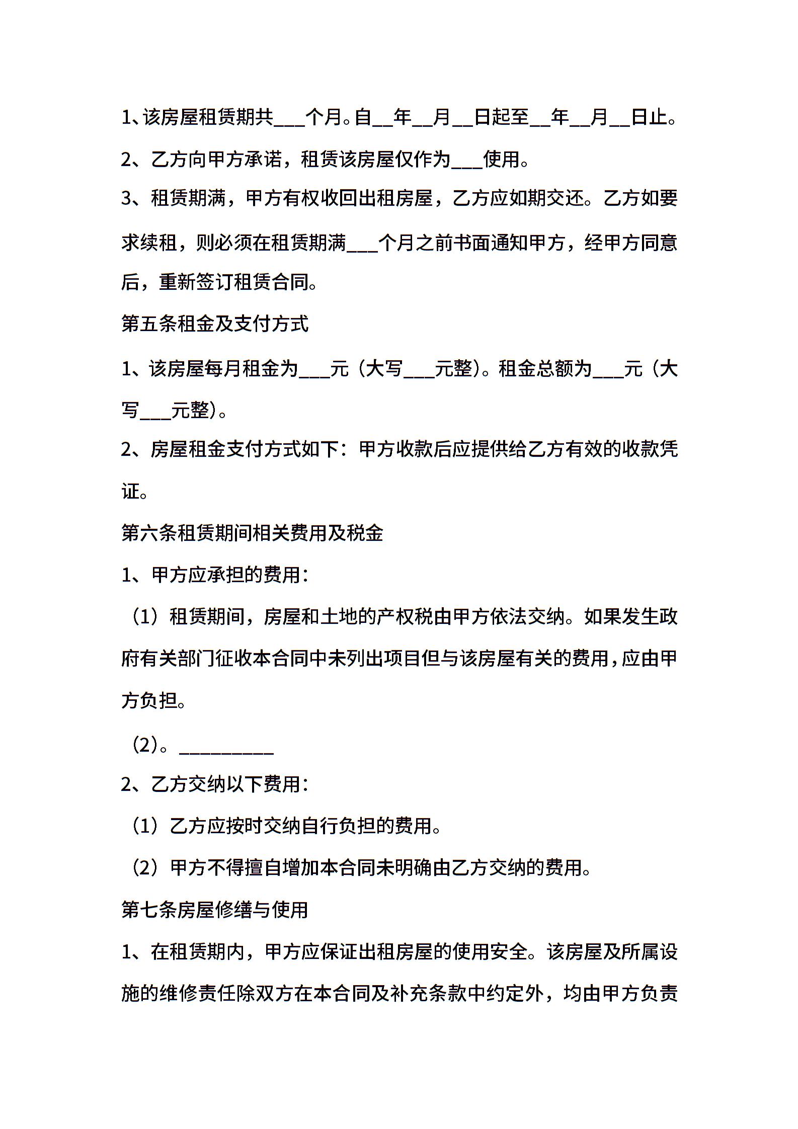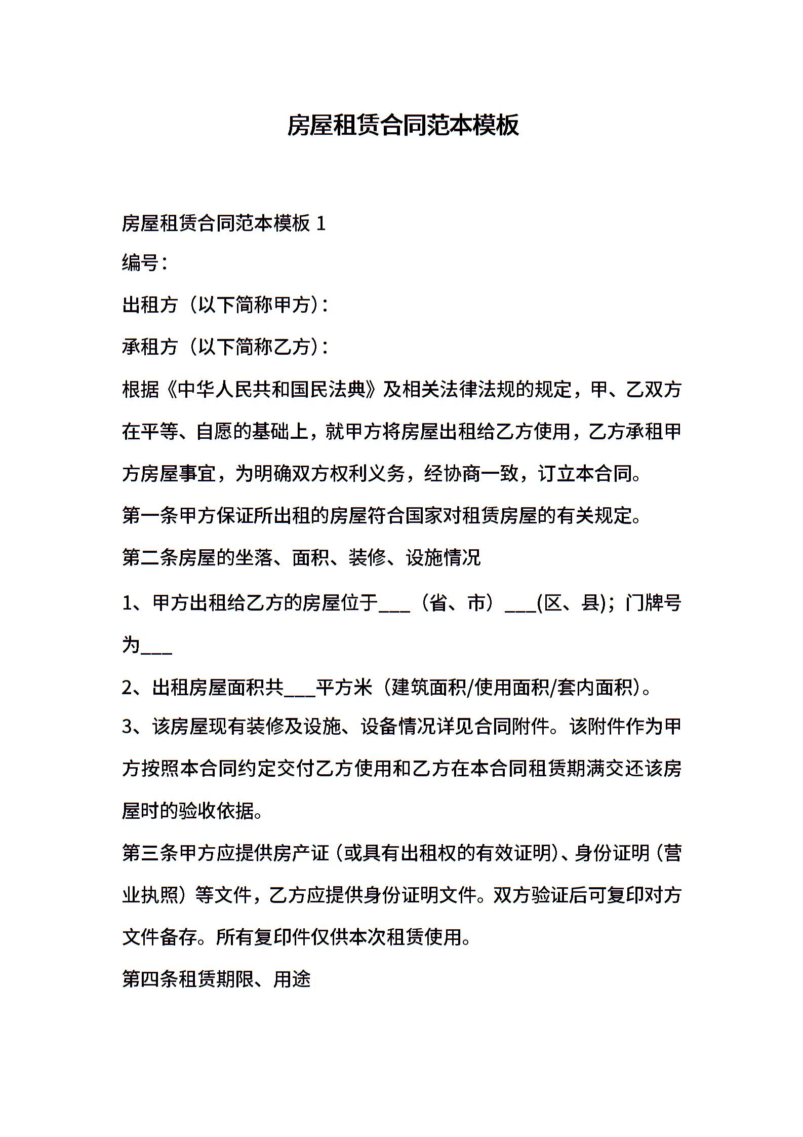 房屋租赁合同范本模板 (2)