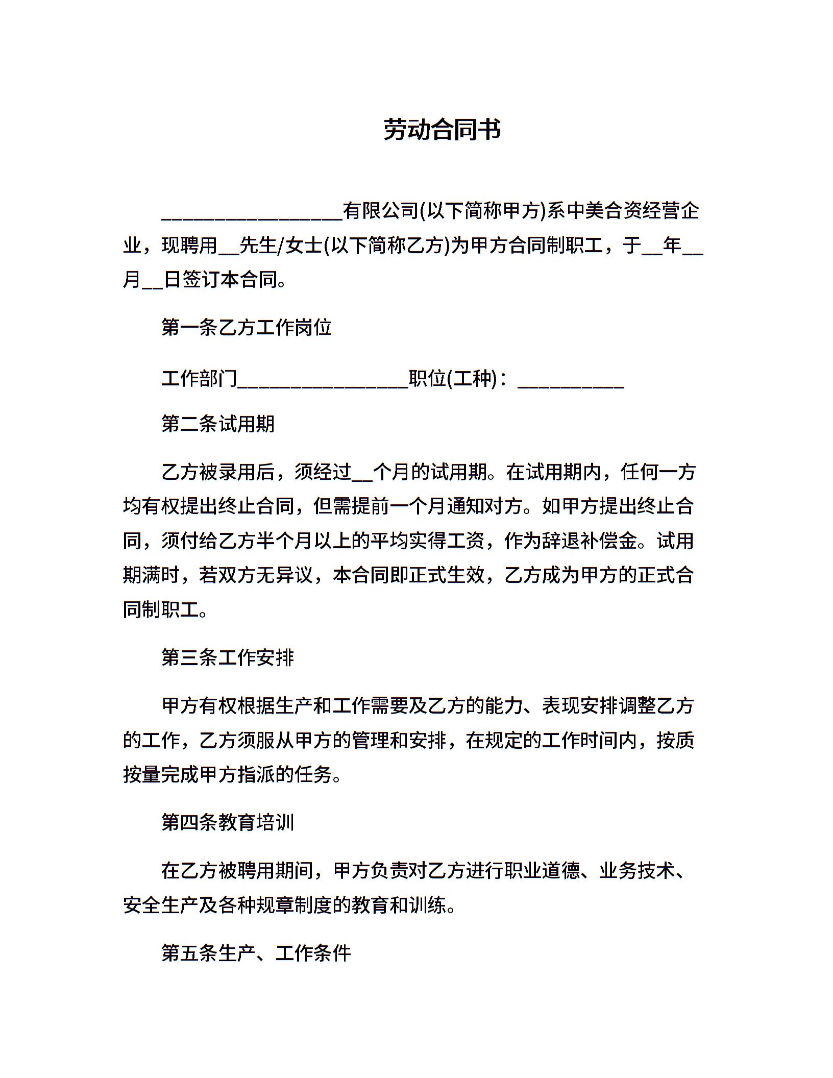劳动合同书