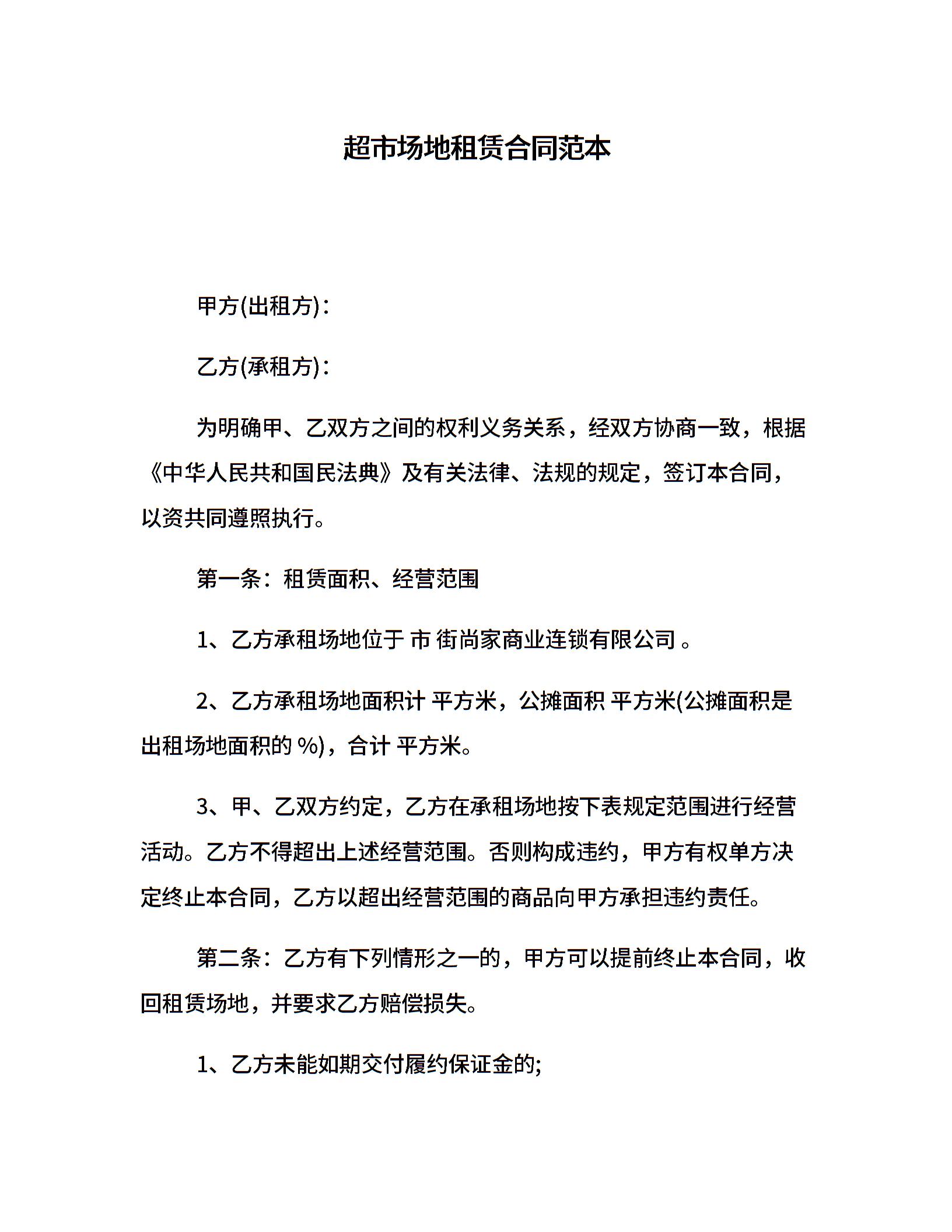 超市场地租赁合同范本