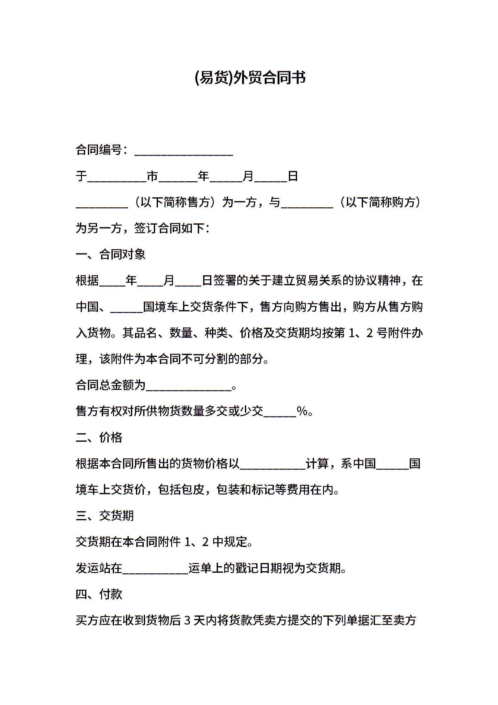 (易货)外贸合同书