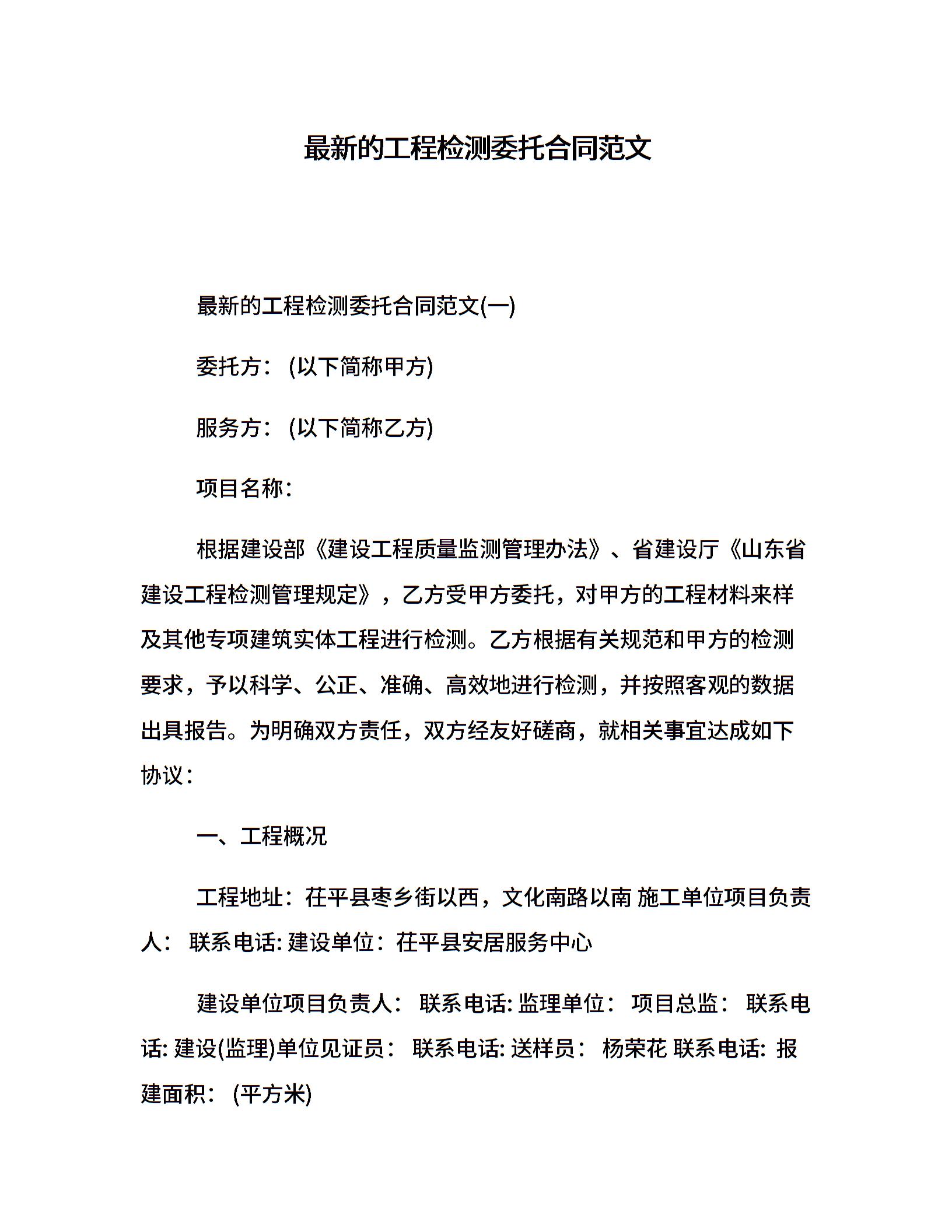 最新的工程检测委托合同范文