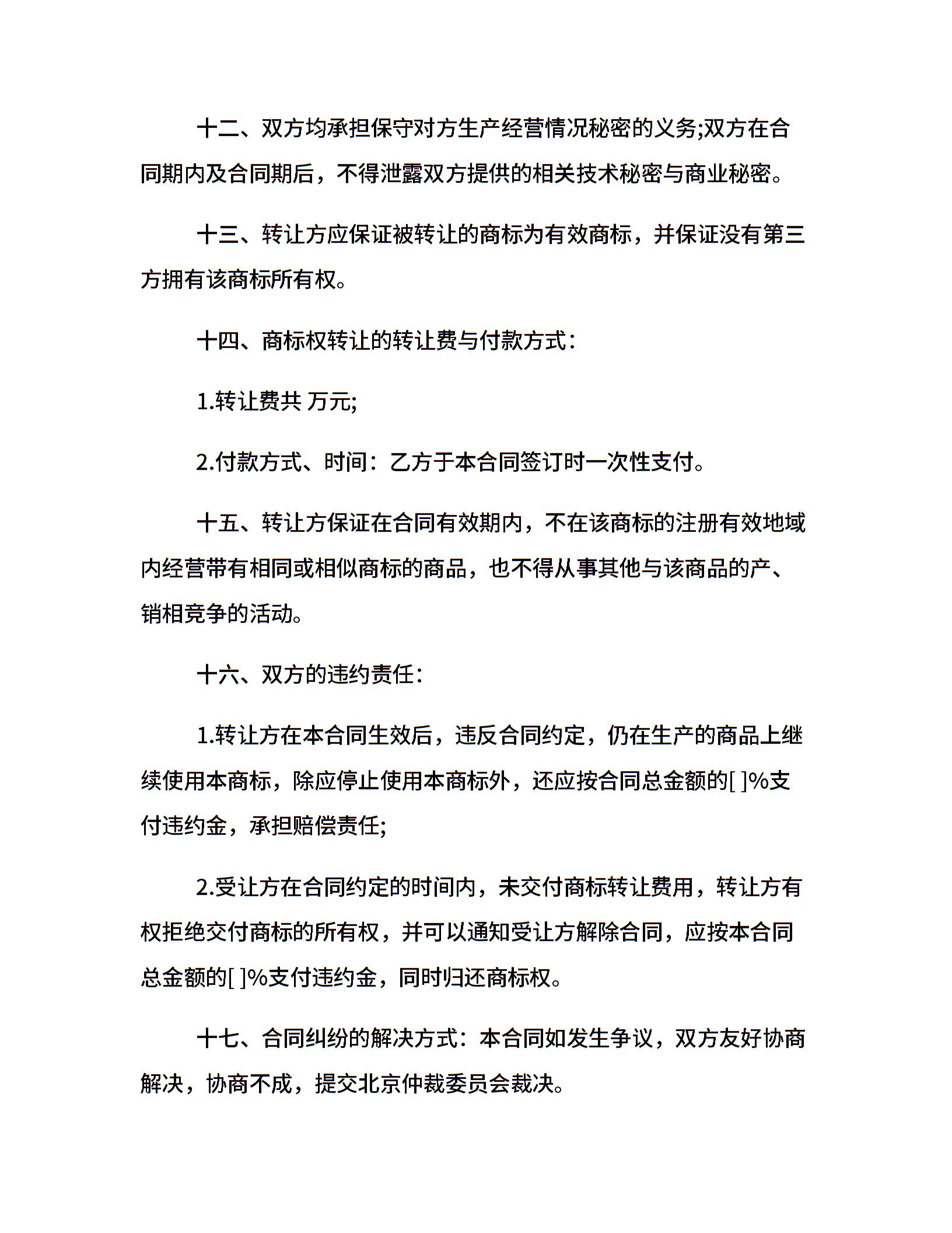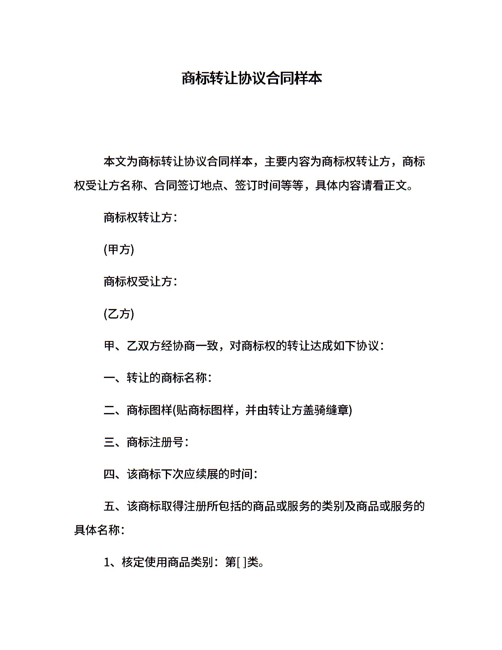 商标转让协议合同样本