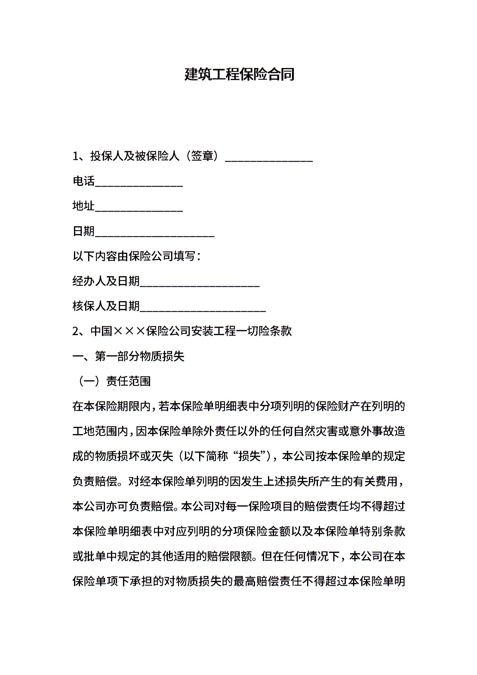 建筑工程保险合同