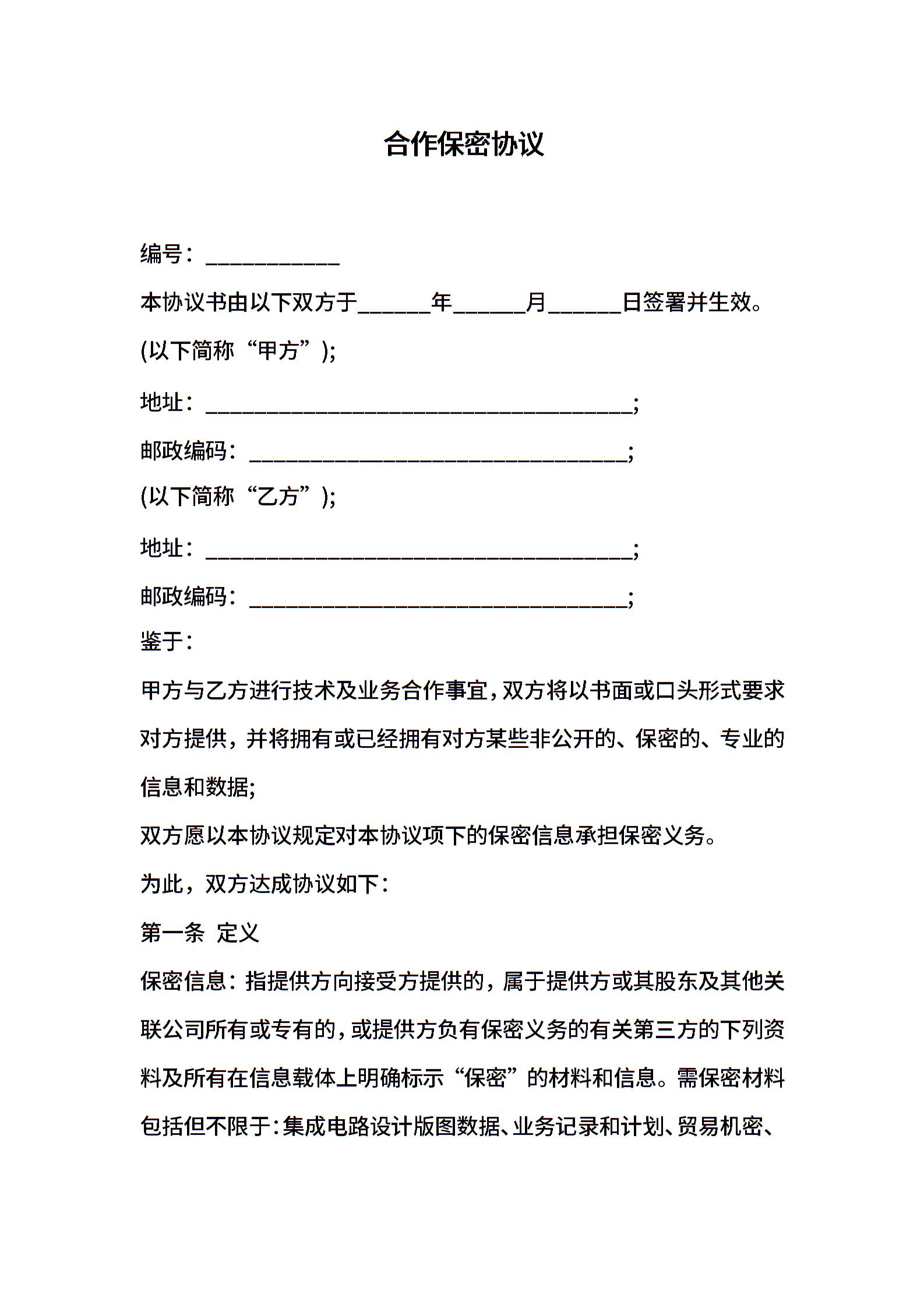 合作保密协议
