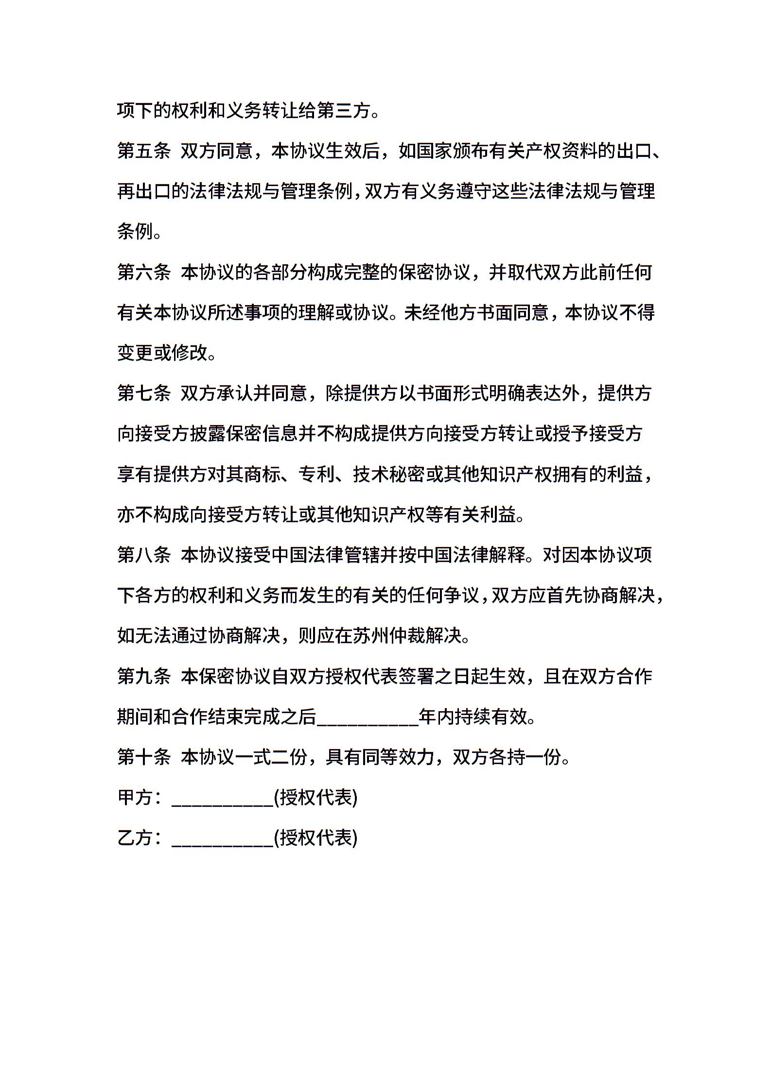 • 分类 保密协议