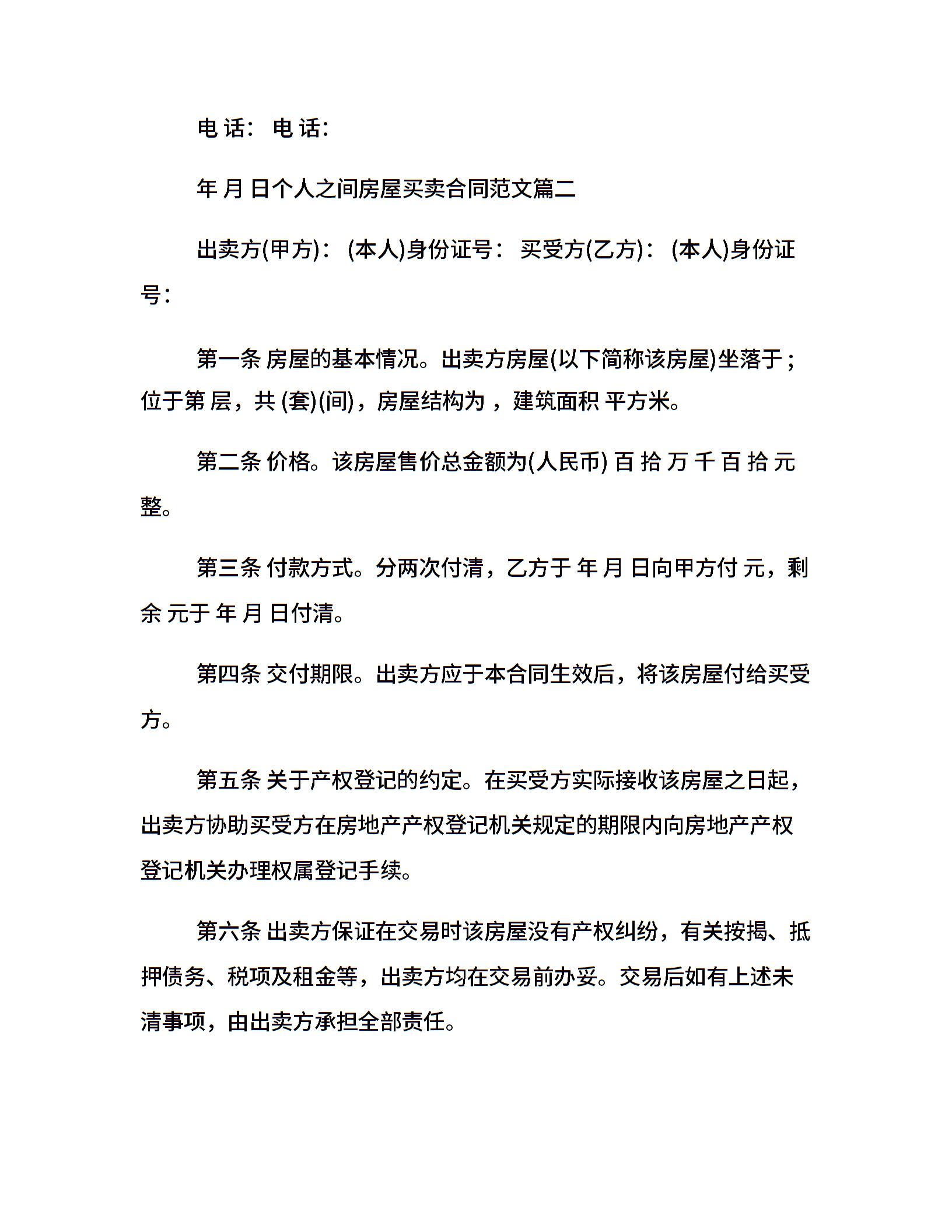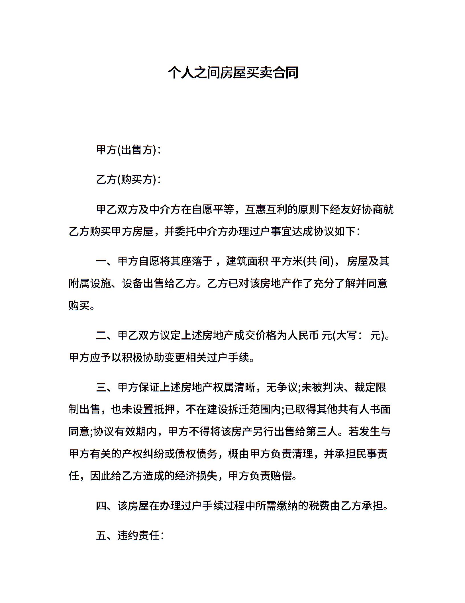 个人之间房屋买卖合同